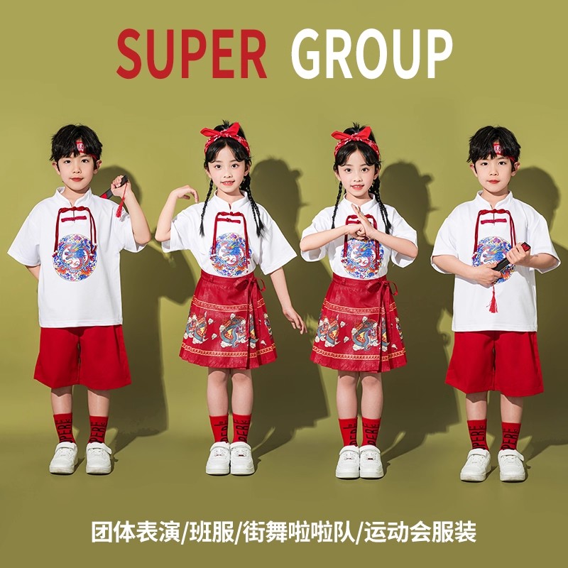 儿童啦啦队演出服装 中国风合唱班服表演 幼儿园小学生运动会开幕式