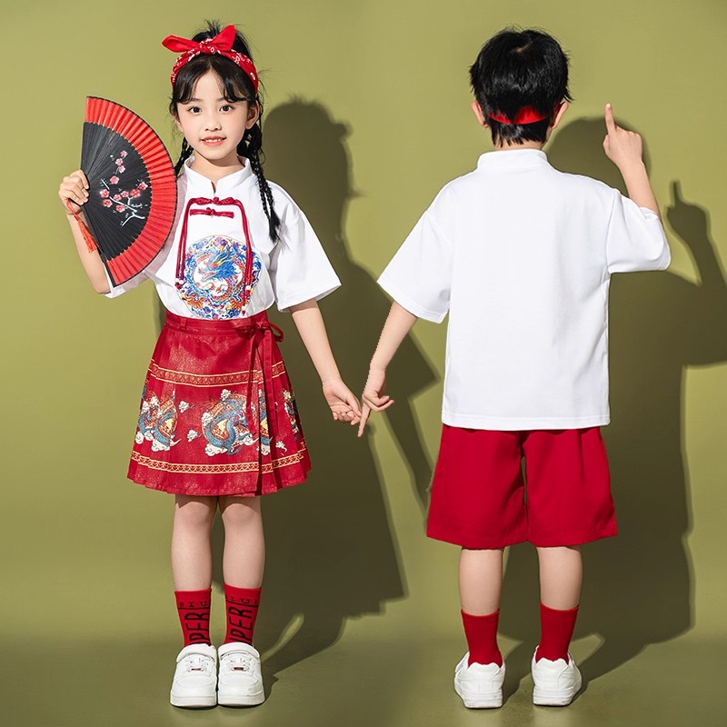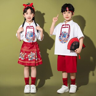 元 旦儿童大合唱演出服男女童马面裙运动会表演服诗歌朗诵国风汉服