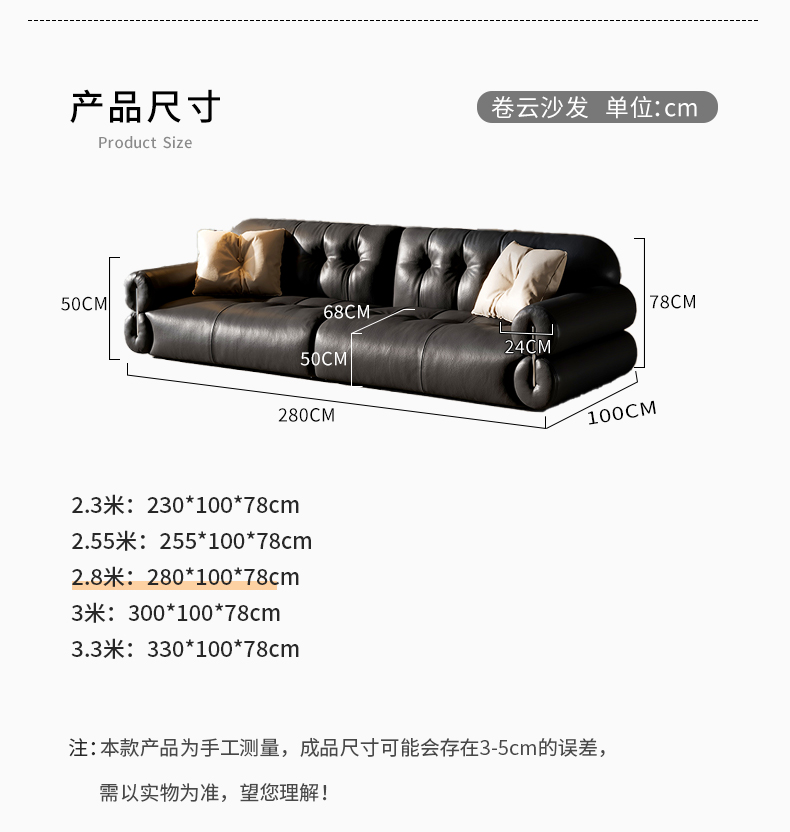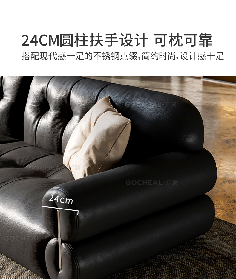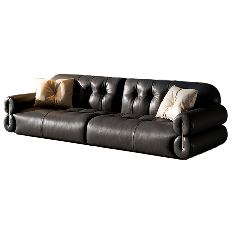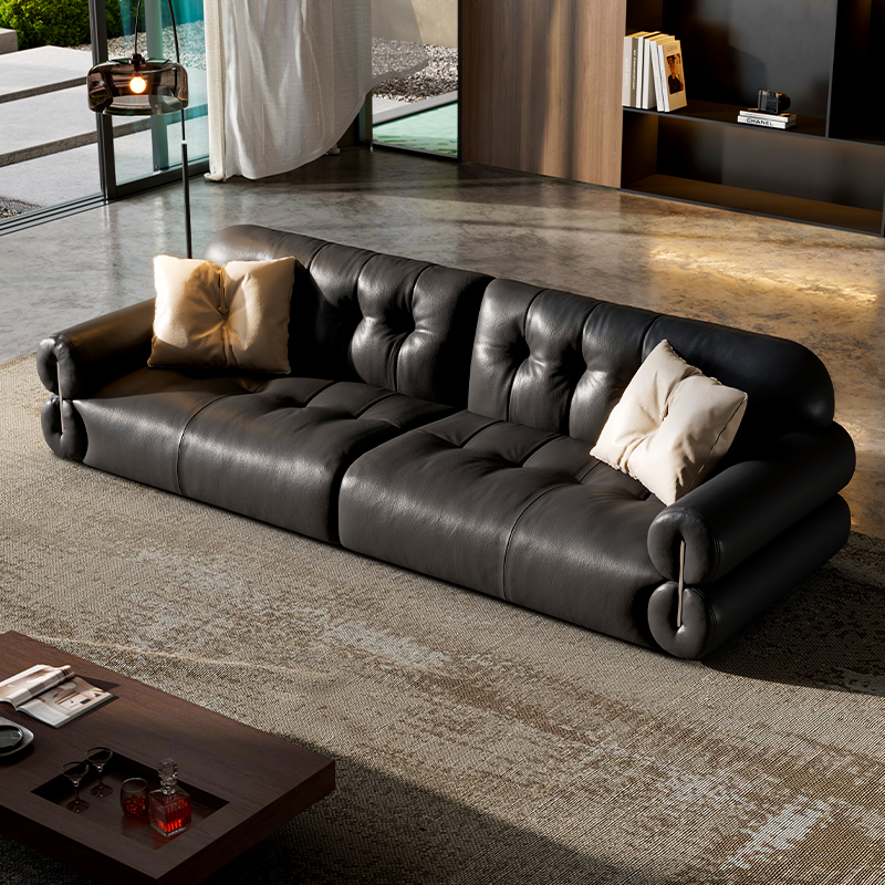 政府补贴黑溏云朵真皮沙发意式 极简客厅头层牛皮家用直排沙发