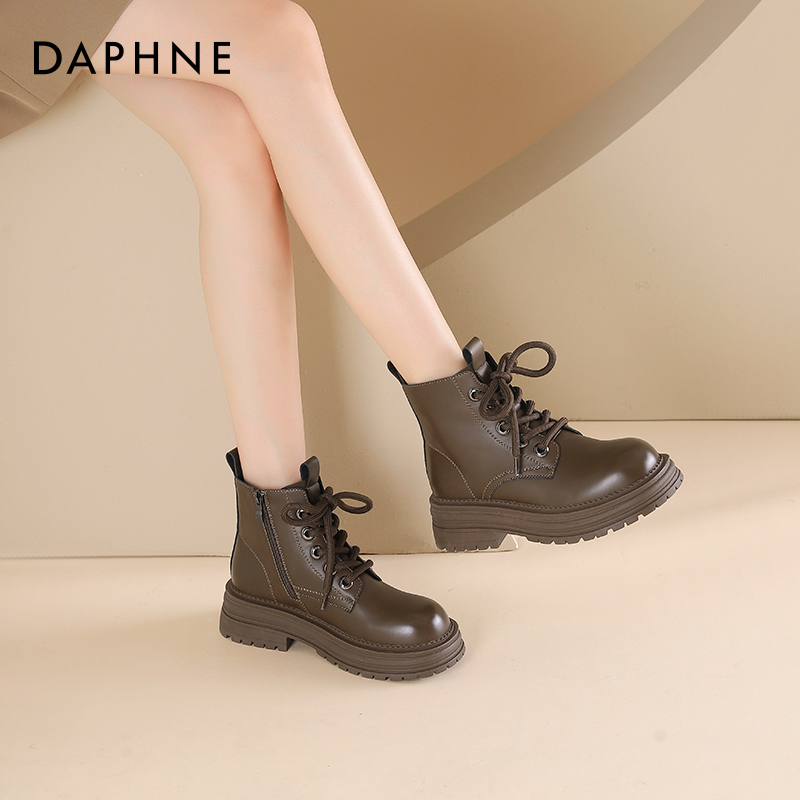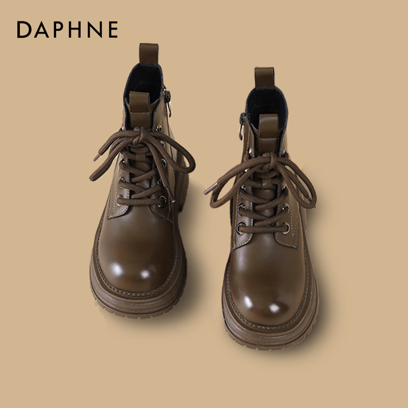 美拉德棕色靴子厚底黑色短靴 秋复古女鞋 英伦风马丁靴女款 2025新款