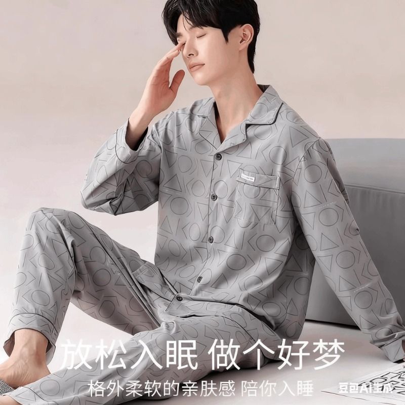 2025年长袖 新款 休闲男式 男士 家居服套装 春秋季 大码 纯棉睡衣春秋款