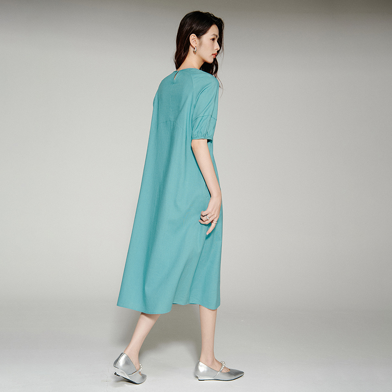 连衣裙 亲肤裙子显白舒适小众短袖 晚白2025年夏新款 松弛感宽松大码