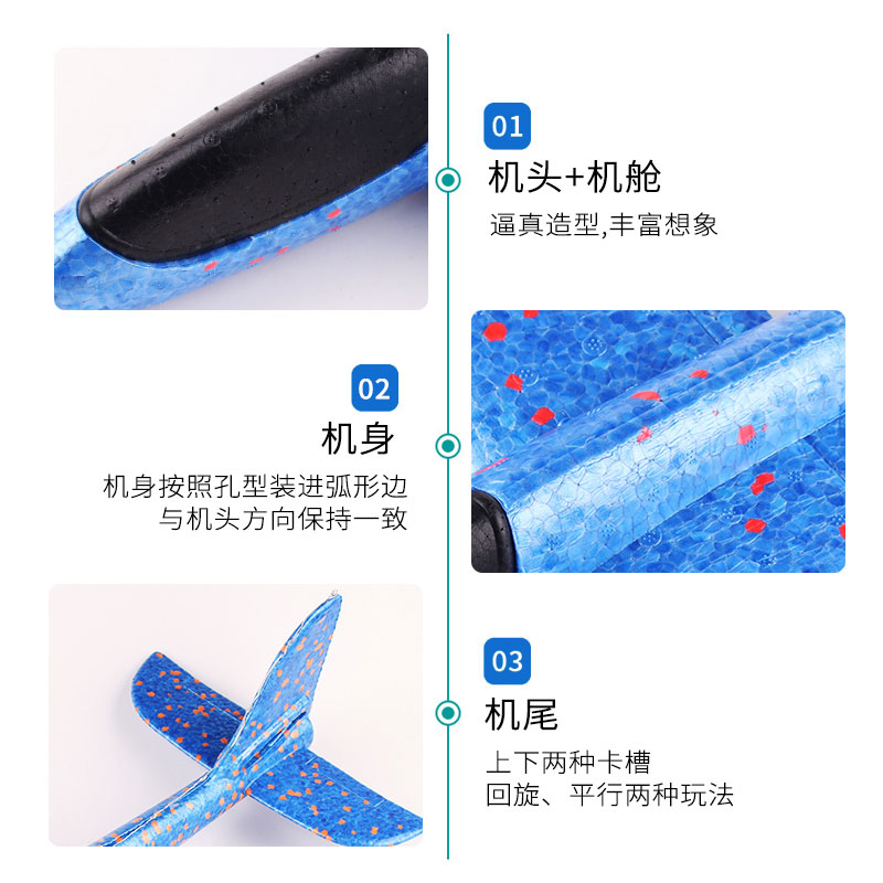 大号手抛飞机玩具发光户外飞机儿童回旋滑翔泡沫飞机模型手工自由