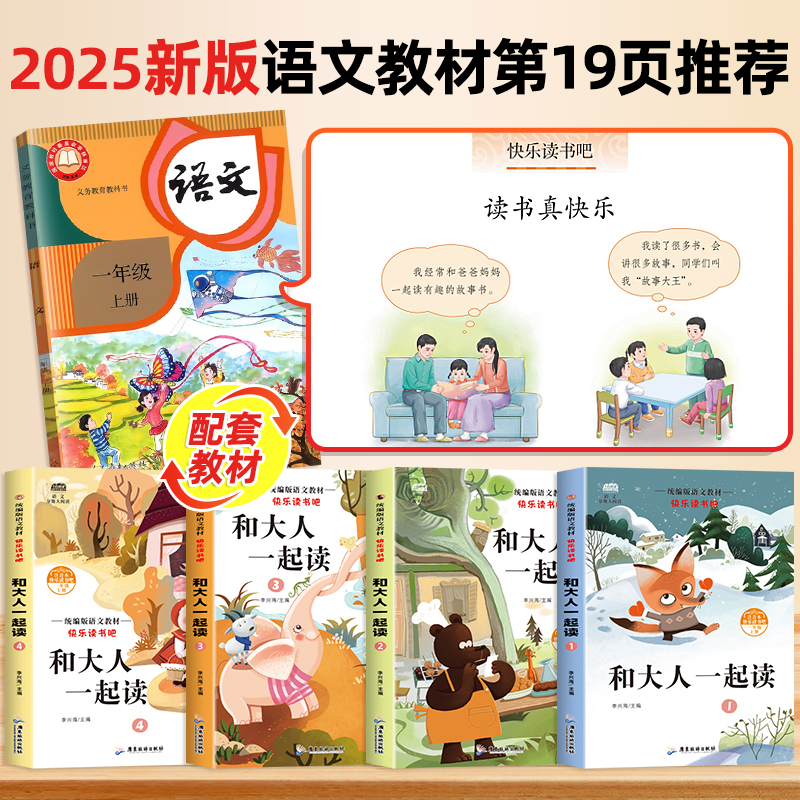 快乐读书吧一年级上册阅读课外书必读小学快乐读书吧老师推荐 注音版 读读童谣和儿歌下册书目带拼音绘本 和大人一起读正版 全套4册