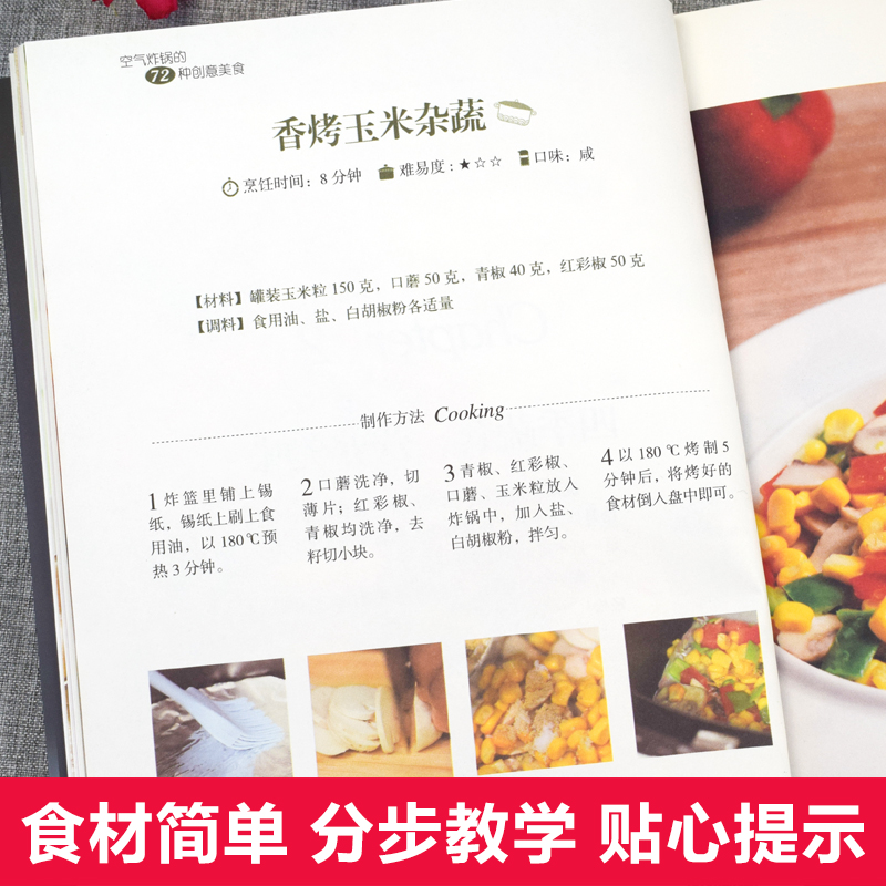 菜谱大全烹饪菜谱餐炒饭盖饭菜谱煮饭砂锅饭美食书籍五谷粗粮美食烹饪教程书家常菜谱书 四色图片视频版 空气炸锅 72种创意美食