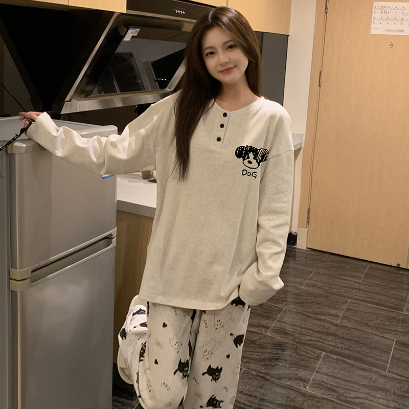 卡通可外穿家居服套装 猫人带胸垫纯棉长袖 2025新款 春秋季 睡衣女款