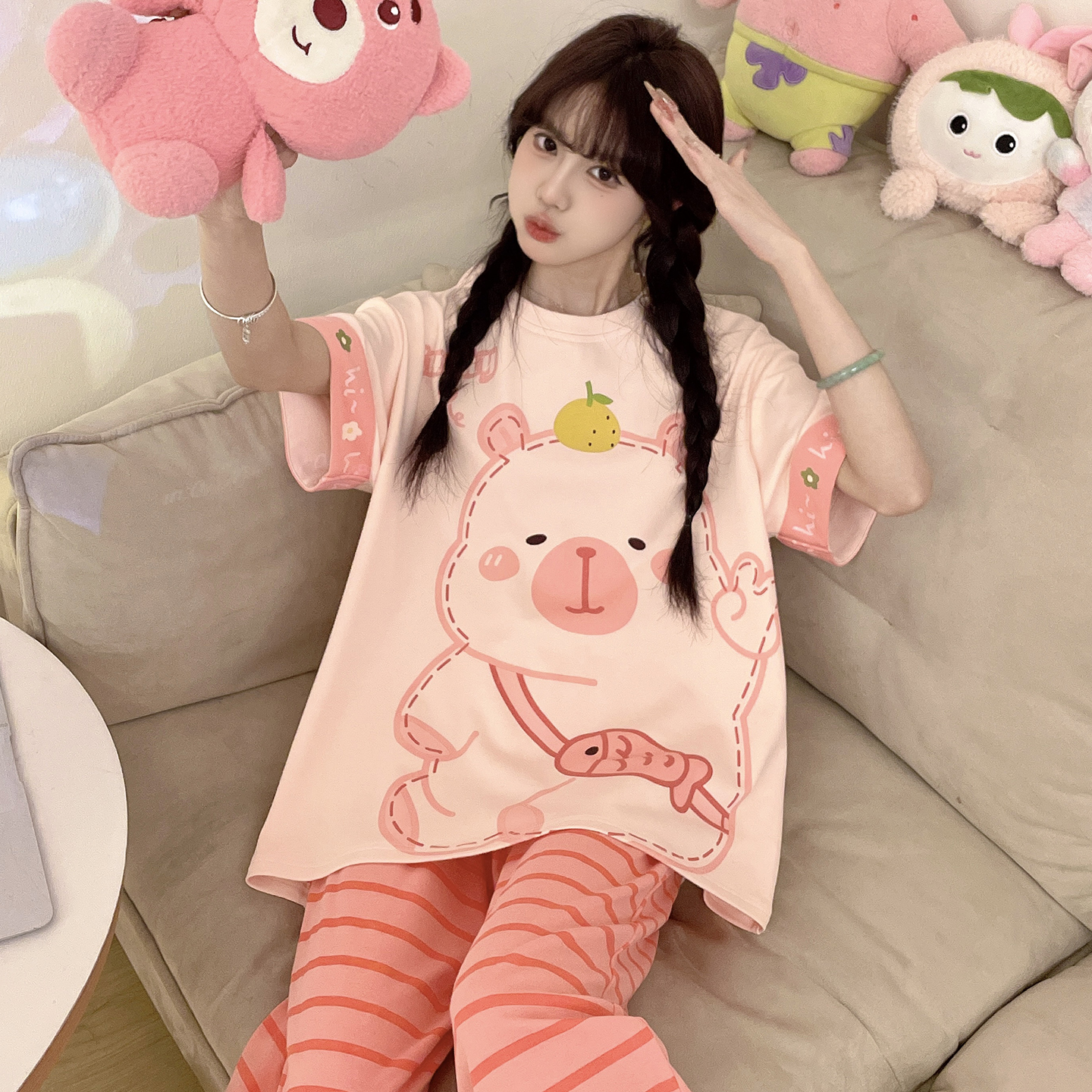 夏款 秋冬季 韩版 2025年新款 睡衣女士春秋款 学生家居服套装 纯棉长袖