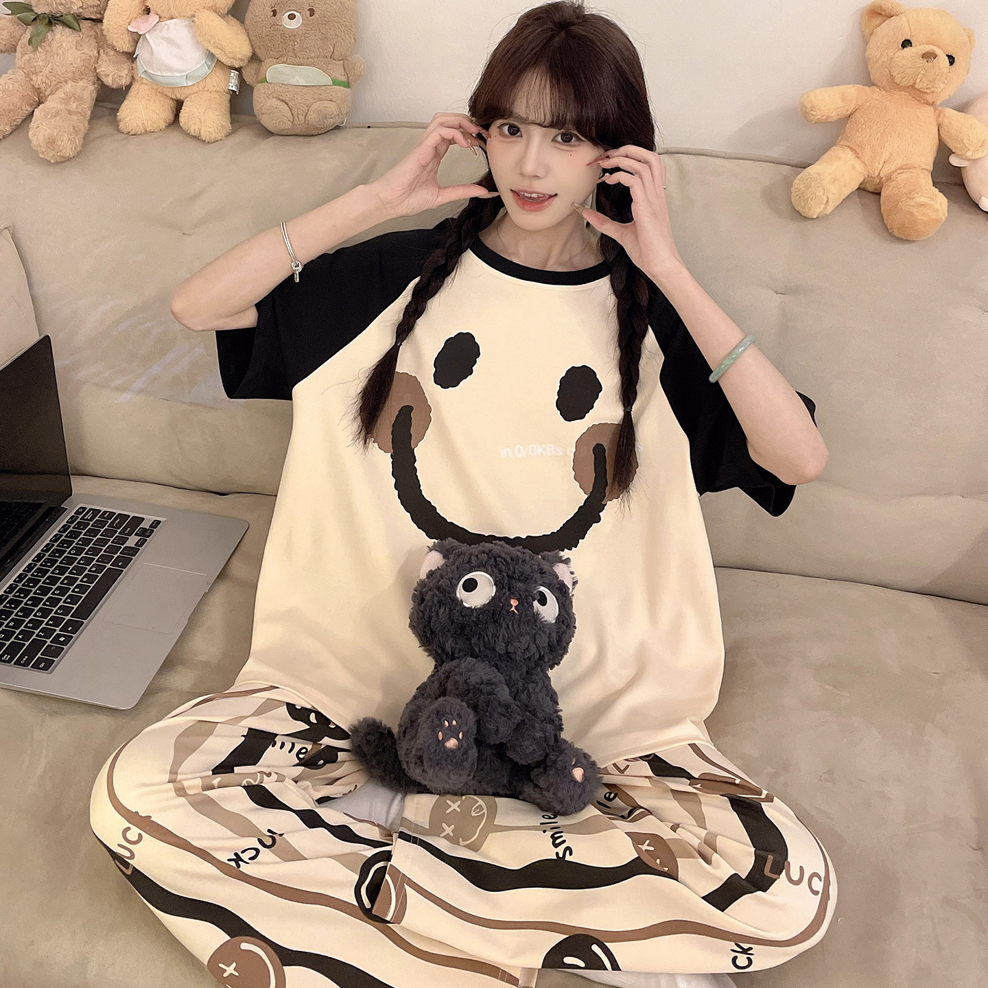 长袖 家居服套装 2025新款 可外穿大码 开衫 猫人纯棉睡衣女士春秋季