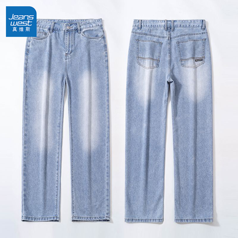 垂感潮流百搭休闲直筒长裤 GR真维斯浅蓝色牛仔裤 薄款 2025新款 男士