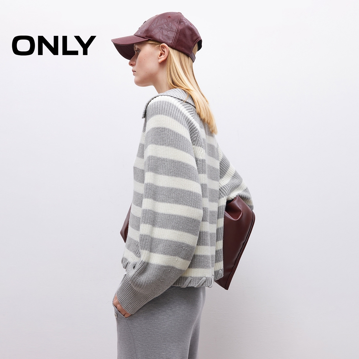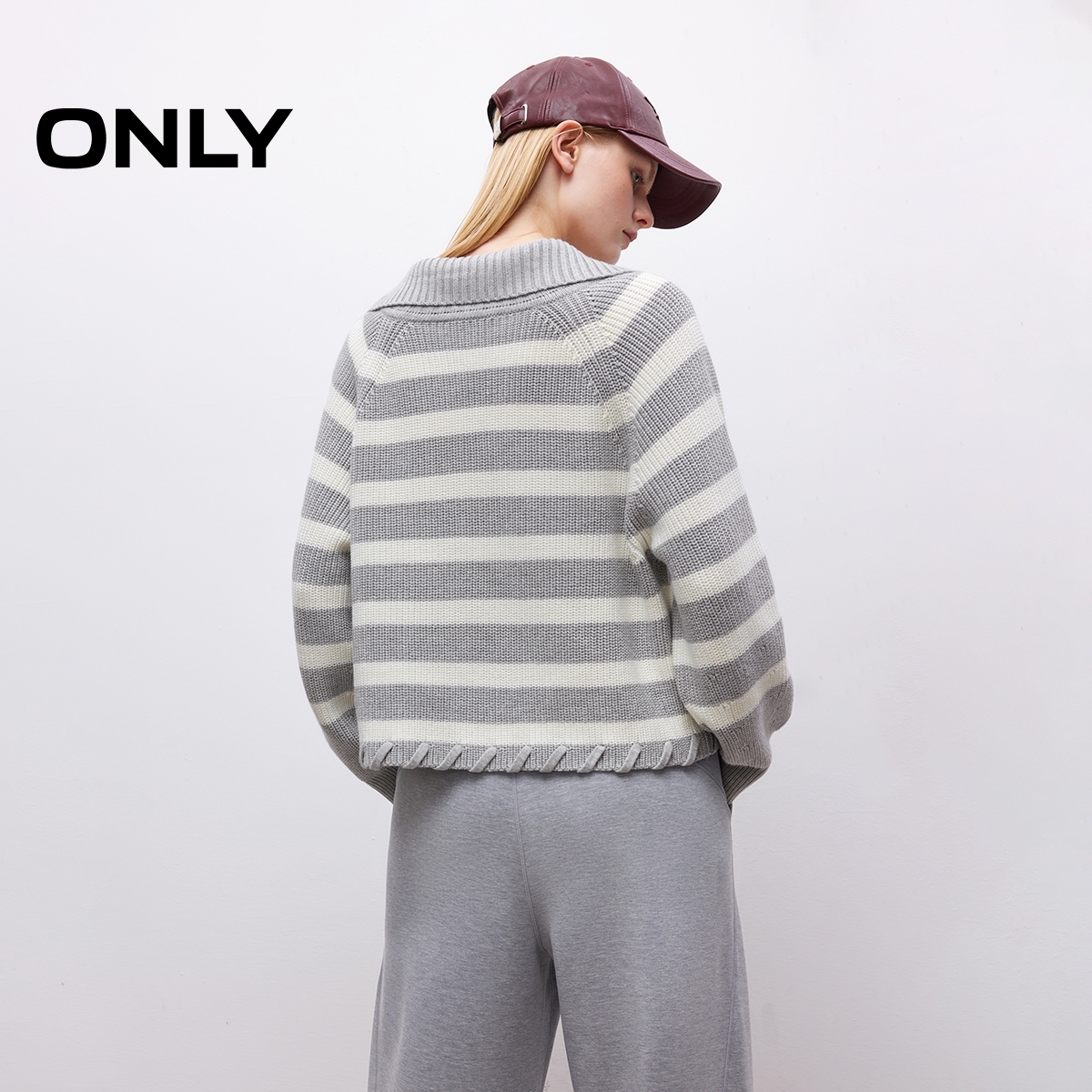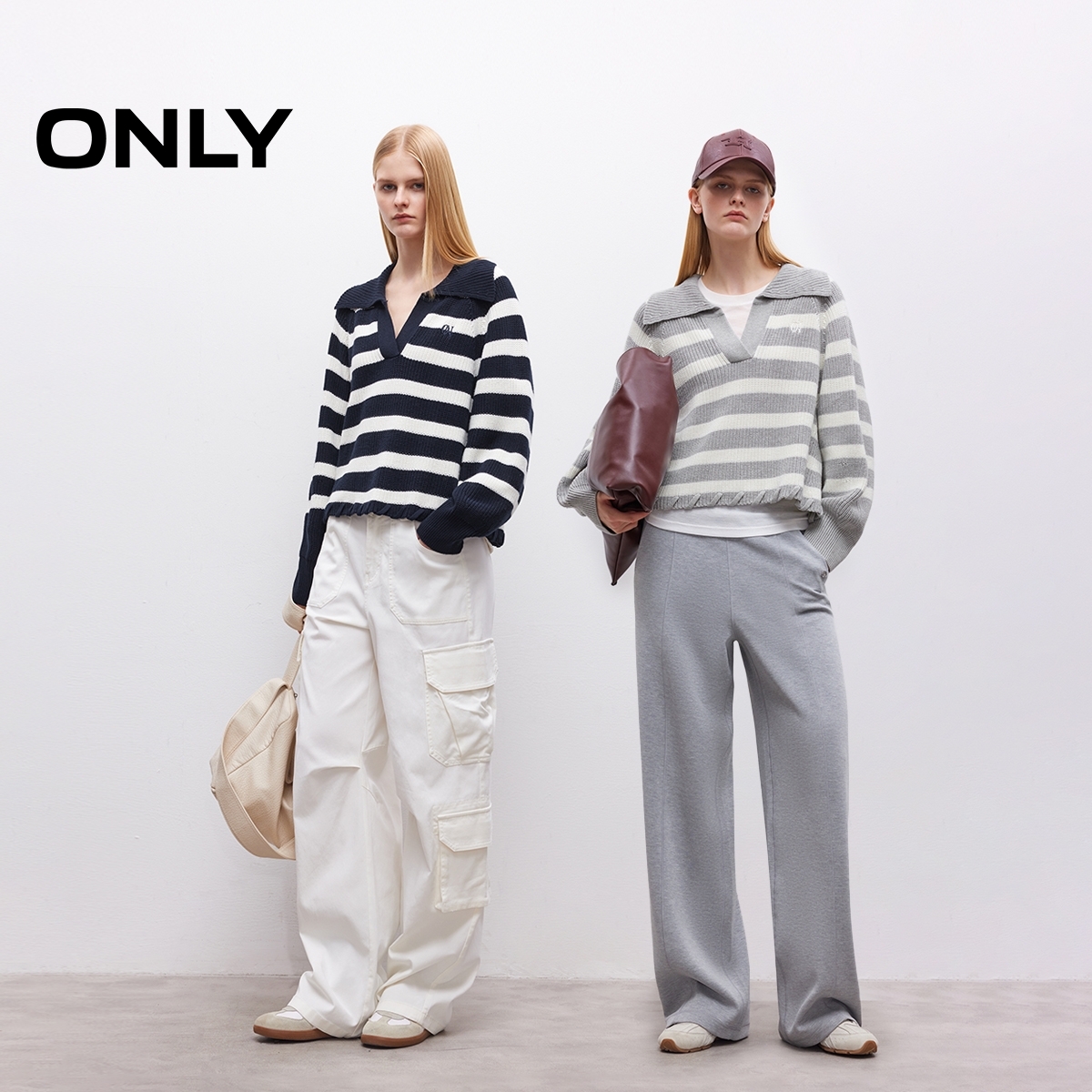 针织衫 ONLY2025秋季 饰边海军风大翻领条纹插肩袖 衣摆绳带装 女 新款