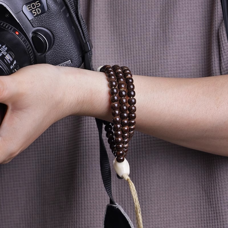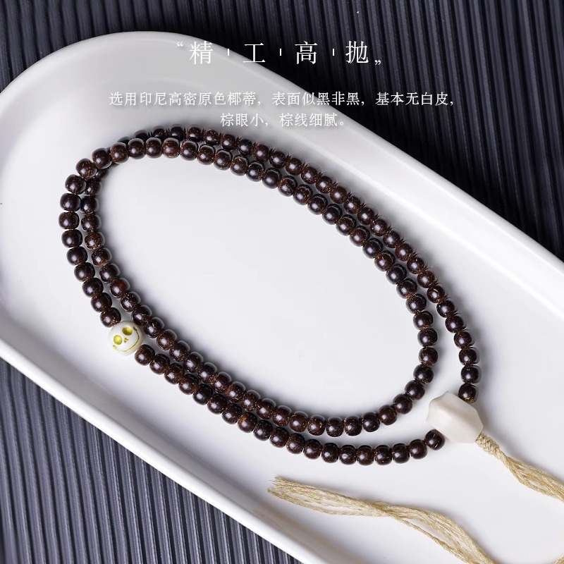 精品原生态印尼椰蒂108颗佛珠老型桶手串原色男文玩项链圆珠直切