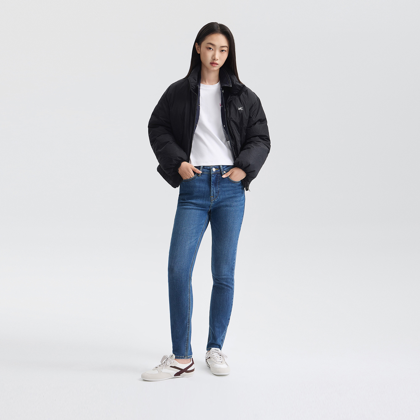 女05415301 牛仔长裤 佐丹奴牛仔裤 女原色洗水复古收褶半松紧腰薄款
