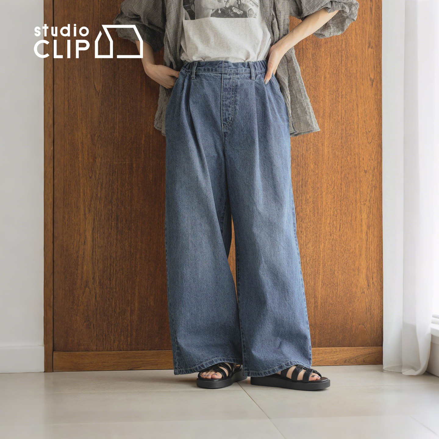 CLIP 宽松简约棉质牛仔阔腿裤 裤 新款 492945 子女2025秋季 studio