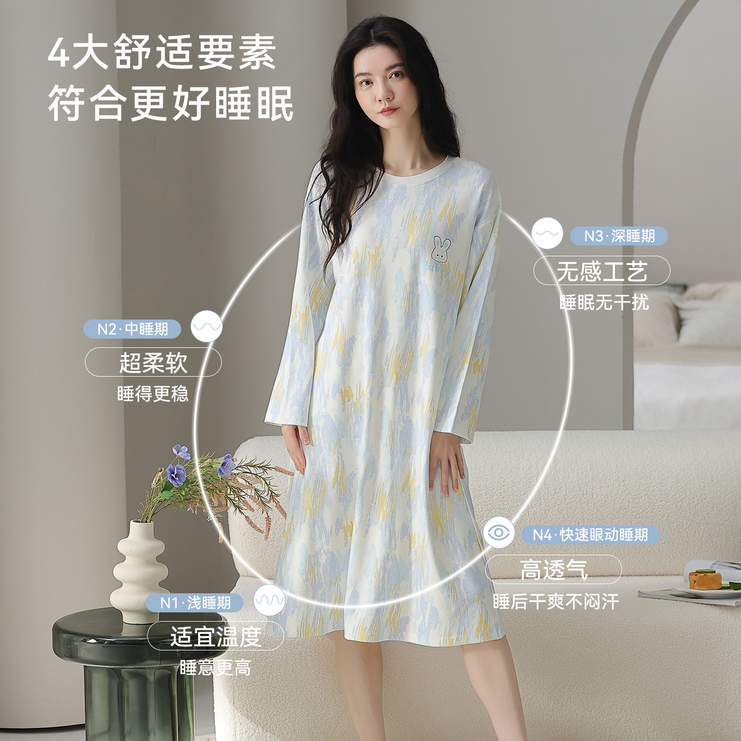 全棉连衣裙 夏可爱甜美睡衣可外穿中长款 猫人纯棉睡裙女款 2025新款