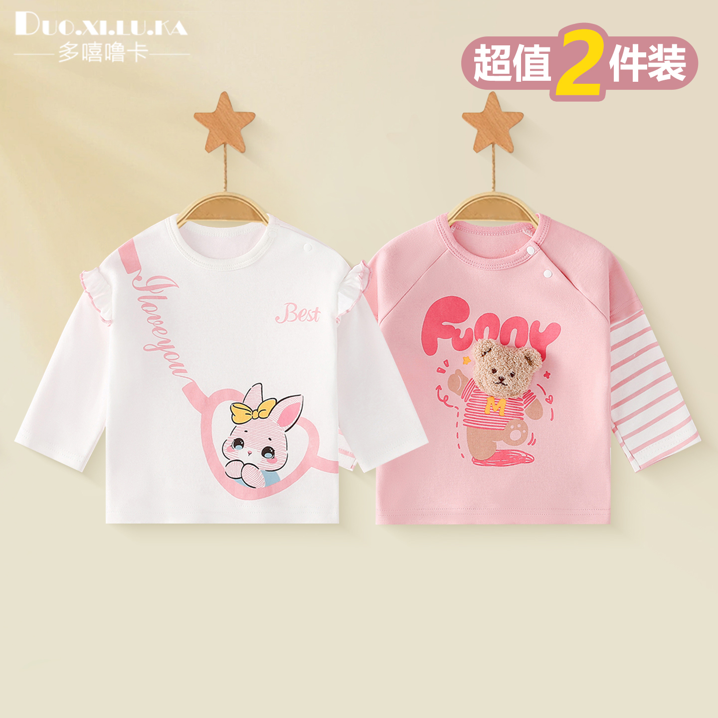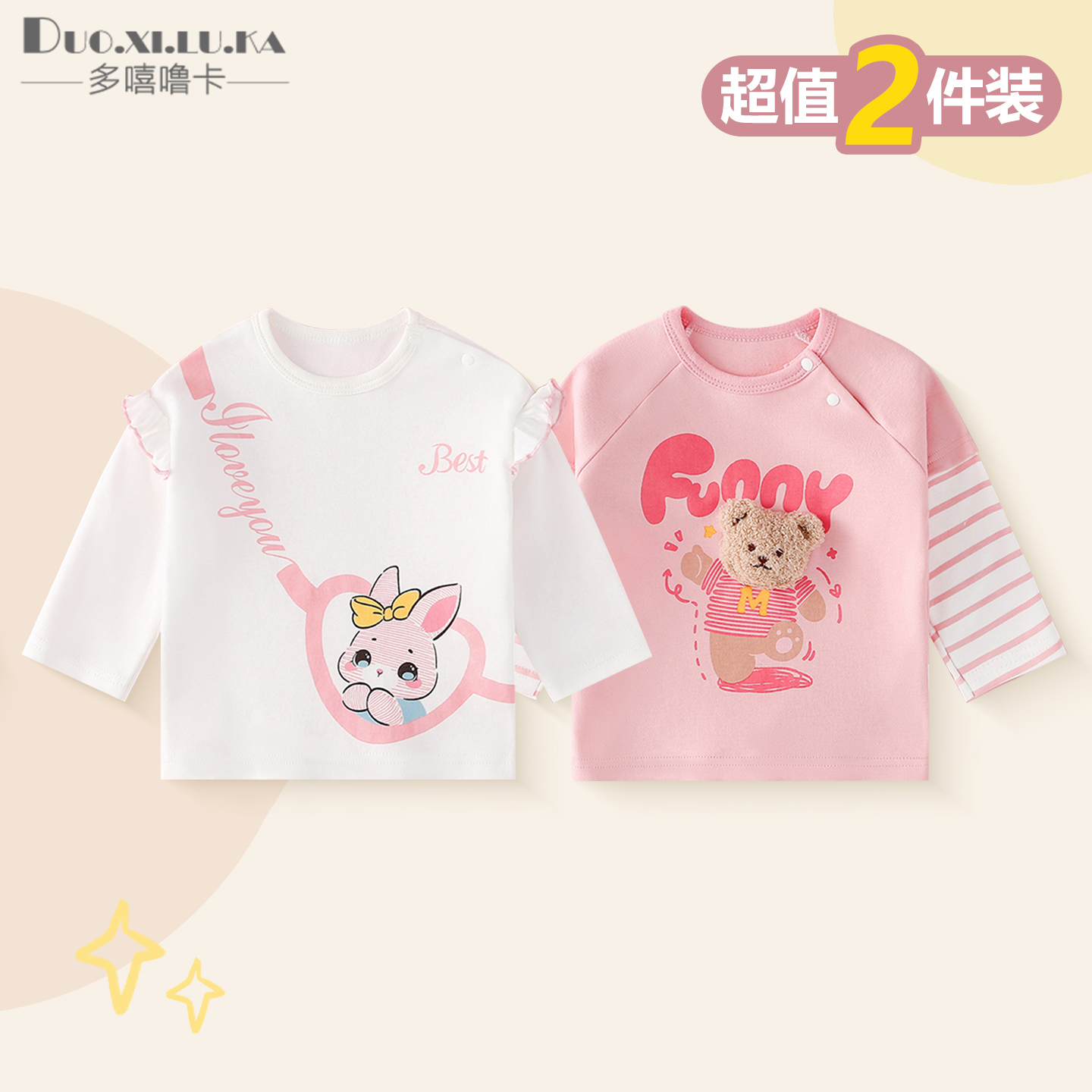 春秋装 t恤儿童2025新款 婴儿a类纯棉圆领上衣 男女宝宝长袖 两件装