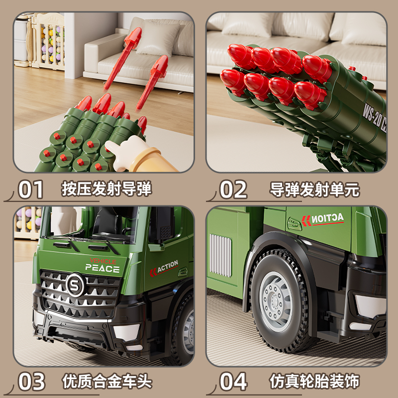 发射导弹车儿童惯性玩具军事男孩火箭车益智模型仿真战车生日礼物