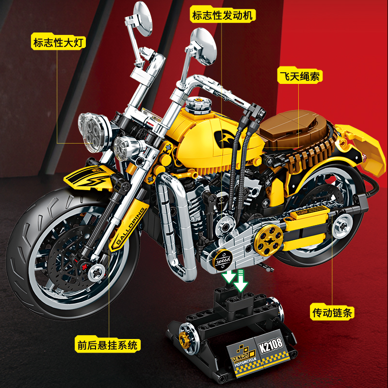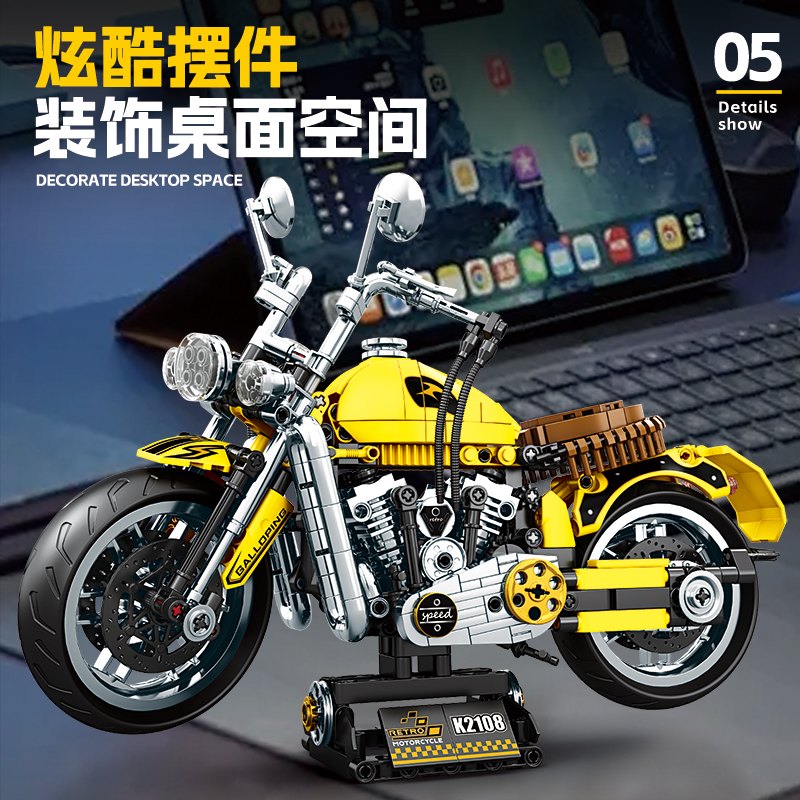 2025新款 6拼图8摆件礼物 男孩系列复古摩托车积木模型儿童玩具拼装