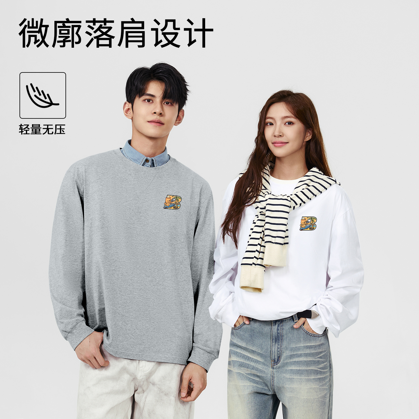 圆领打底衫 班尼路SK系列休闲长袖 男款 倒三角秋季 t恤男重磅美式