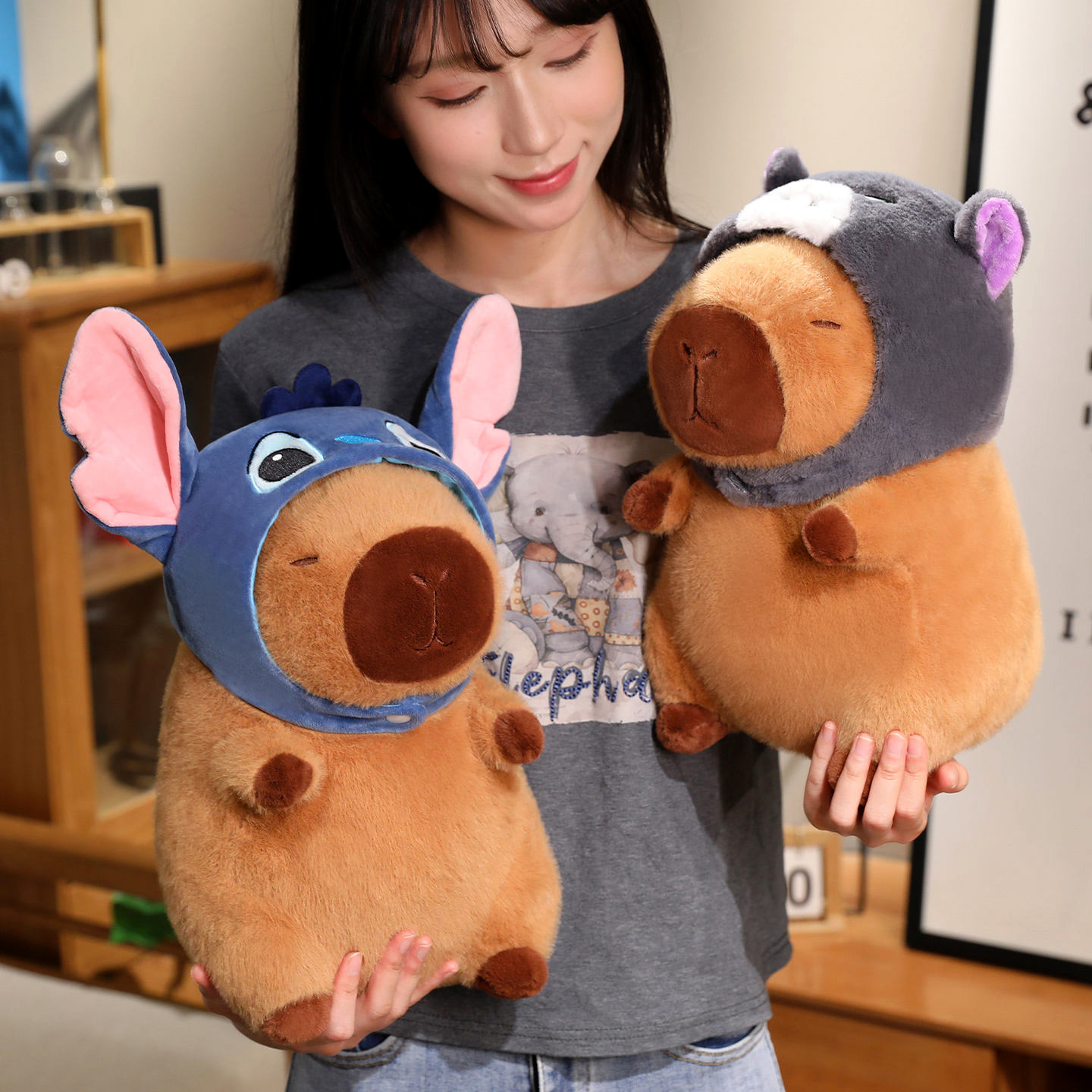 变身卡皮巴拉公仔戴帽水豚玩偶毛绒玩具布娃娃挂饰儿童礼物男女生