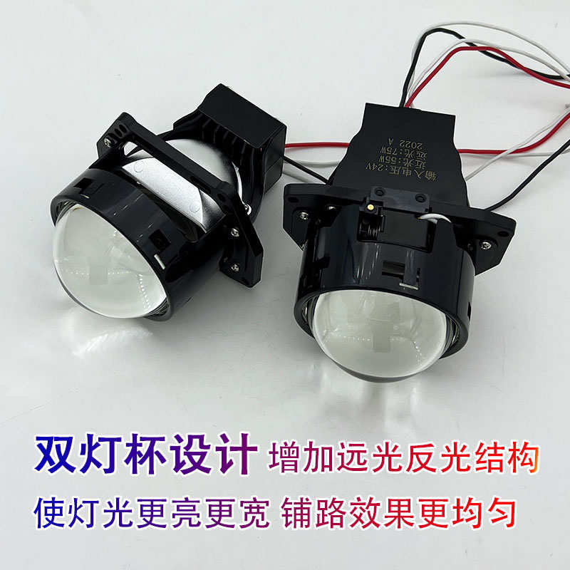 24V货车客车鱼眼大灯超亮聚光快启LED改装 75W双灯杯双光透镜高亮