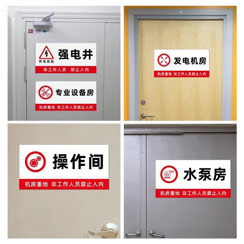 强电井弱电井安全警示标识配电房监控室注意安全小心危险操作间配电房水井弱电机房冷冻机房设备安全标示贴