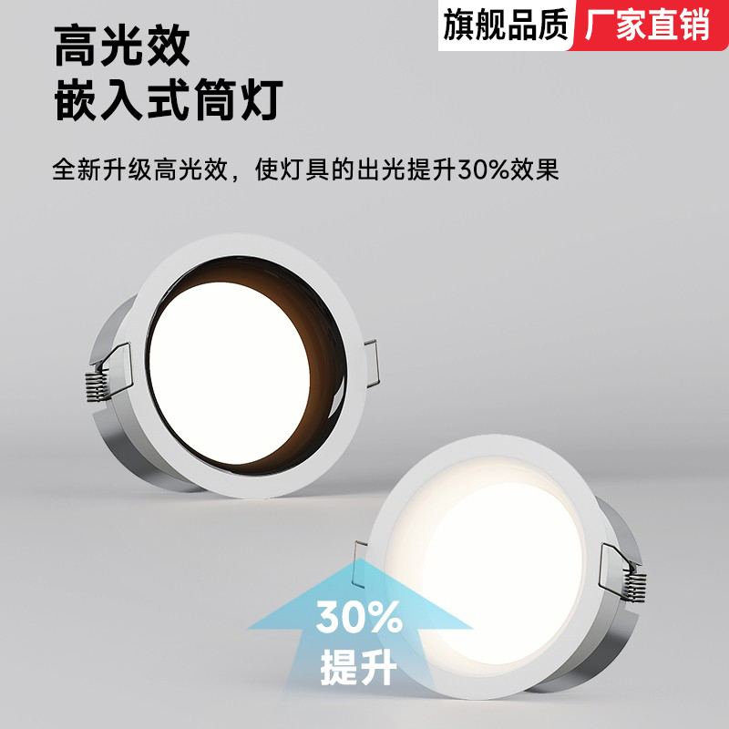 防眩筒灯嵌入式 led深杯护眼全光谱家用天花灯客厅过道射灯孔洞灯
