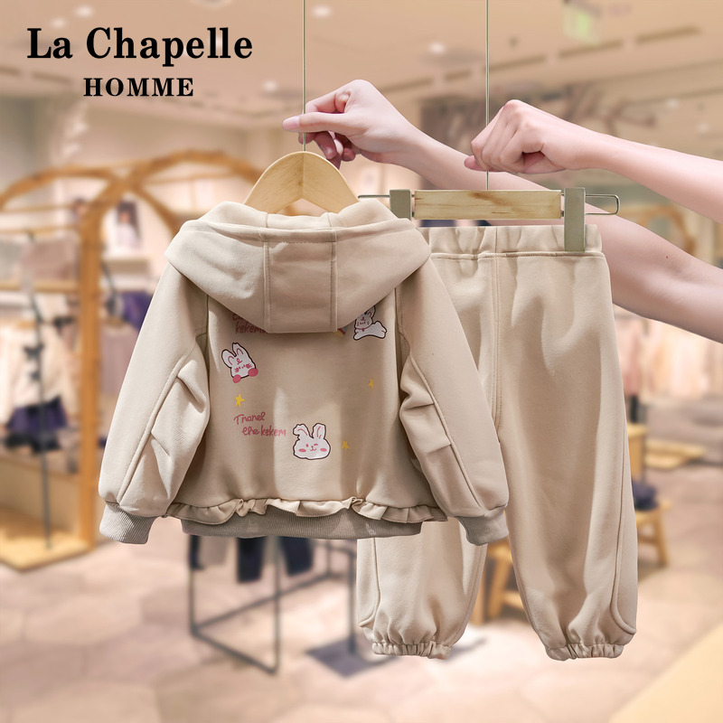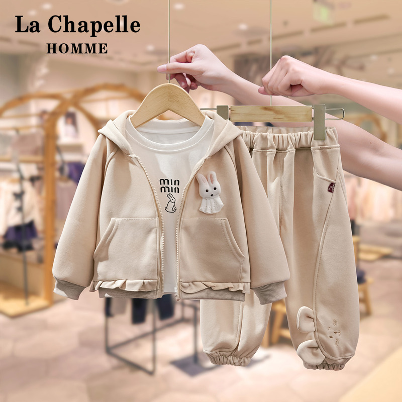 儿童宝宝运动外套三件套衣服潮 2025新款 拉夏贝尔女童卫衣套装 秋季