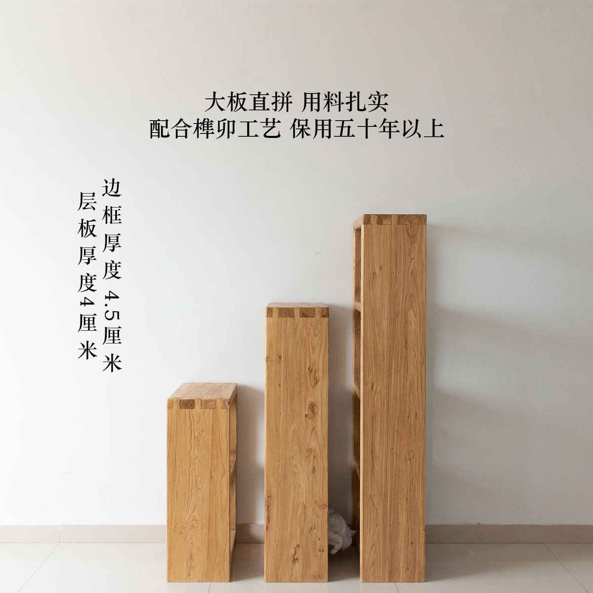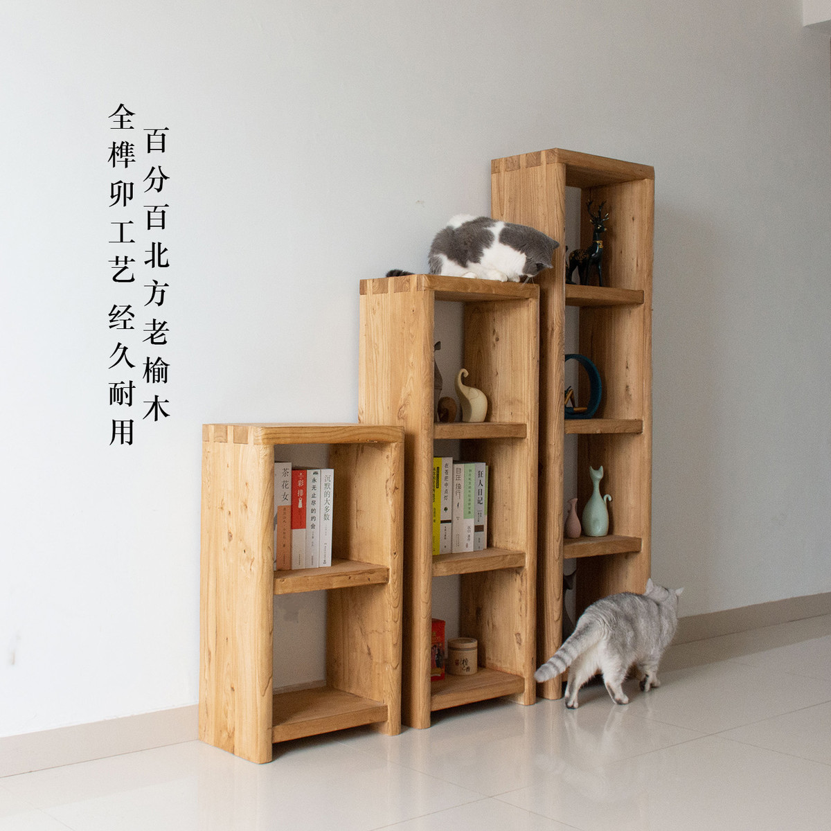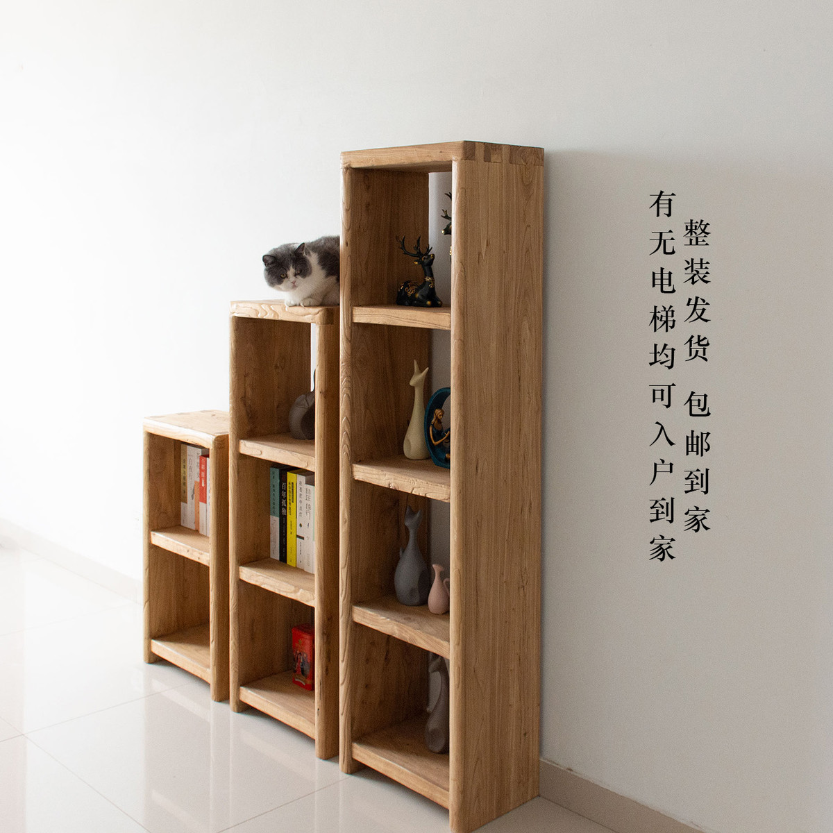 老榆木原木书架书柜纯实木组合置物架边柜简约儿童绘本落地格子柜