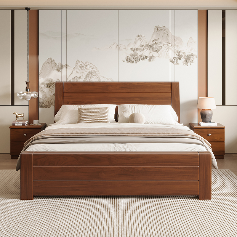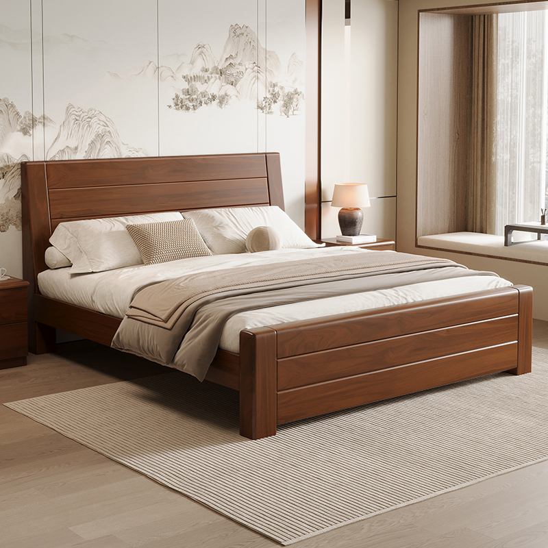 实木床1.8米新中式 双人床主卧经济型简约1.5米家用加厚1.2m单人床
