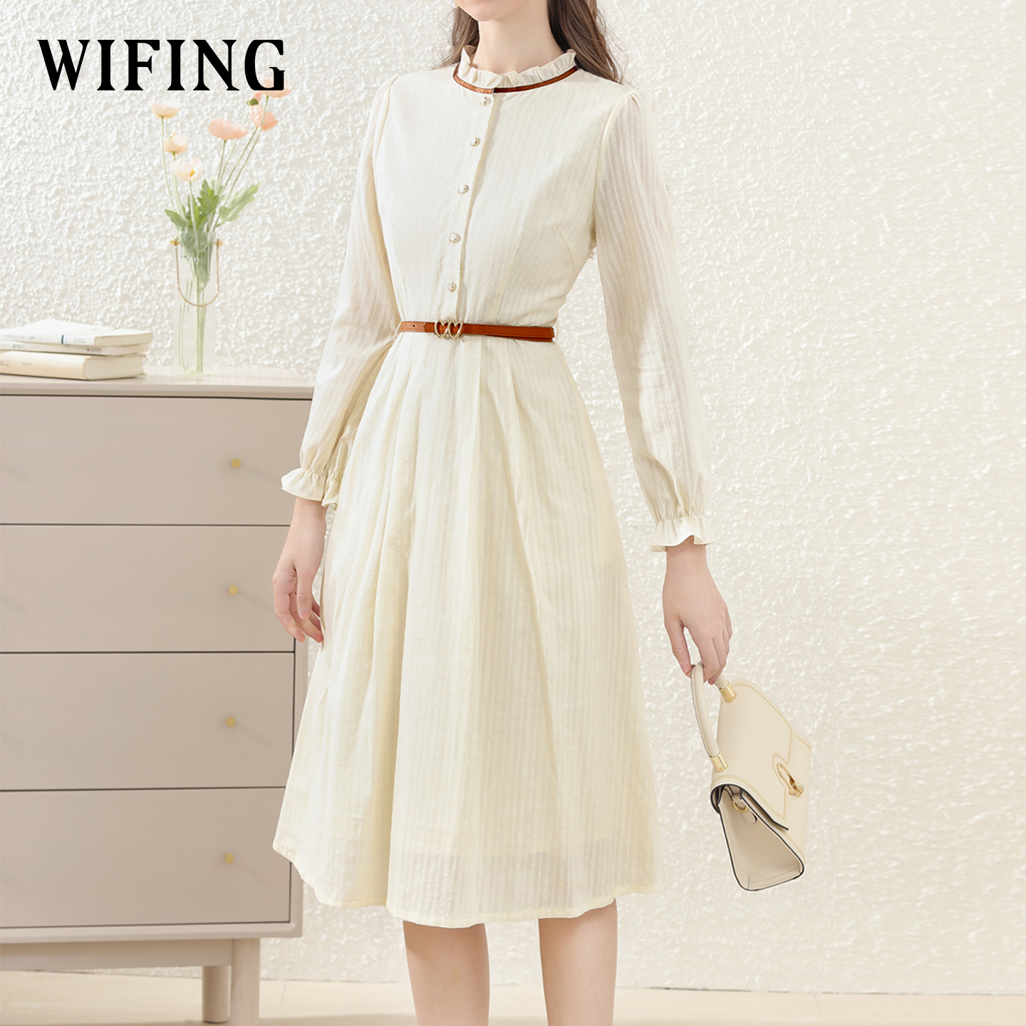 女装 气质娃娃领显瘦胖MM长袖 秋季 法式 假两件连衣裙 新款 绮娑大码