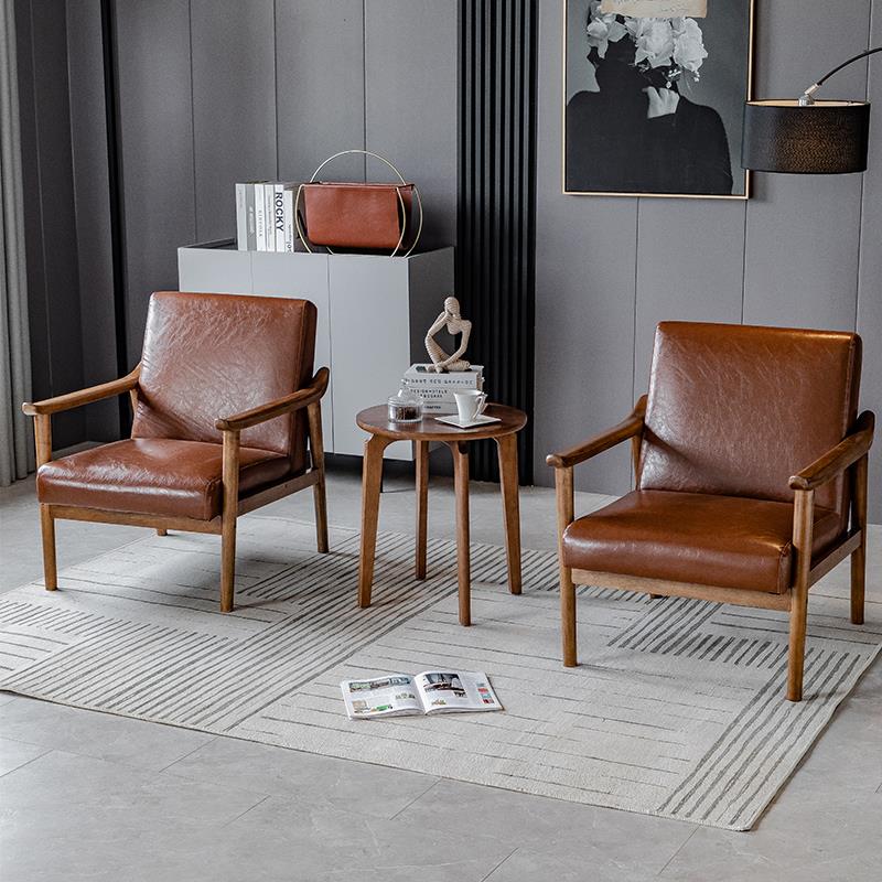 北欧单人沙发椅实木椅子书房卧室阳台休闲沙发日式 客厅简约原木椅