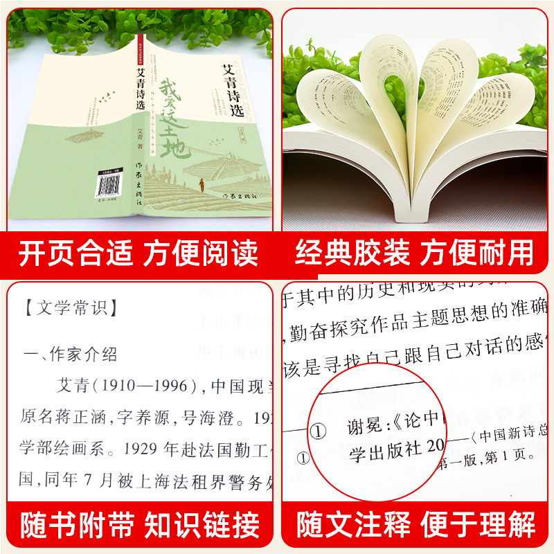 艾青诗选九年级必读正版 艾菁爱青诗集爱情艾情艾清文选选集诗歌作家水浒传 原著课外阅读书初中生初三上册书目我爱这土地原著人教版