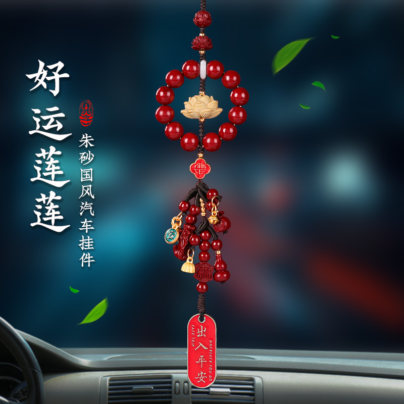 汽车挂件朱砂莲花车挂车载车内车挂饰2025新款 车上后视镜保平安男