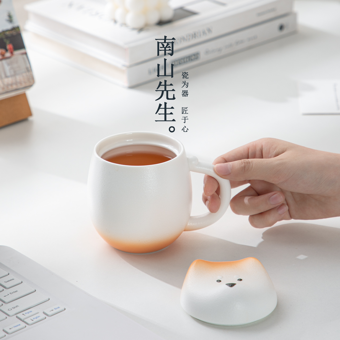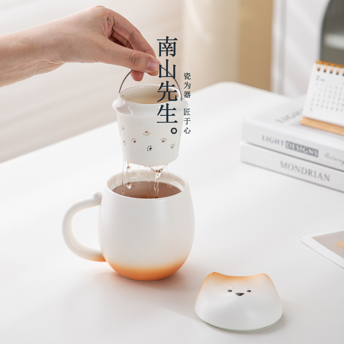 言仓线条小狗泡茶分离杯带滤托陶瓷水杯办公室茶杯生日礼物