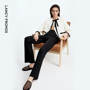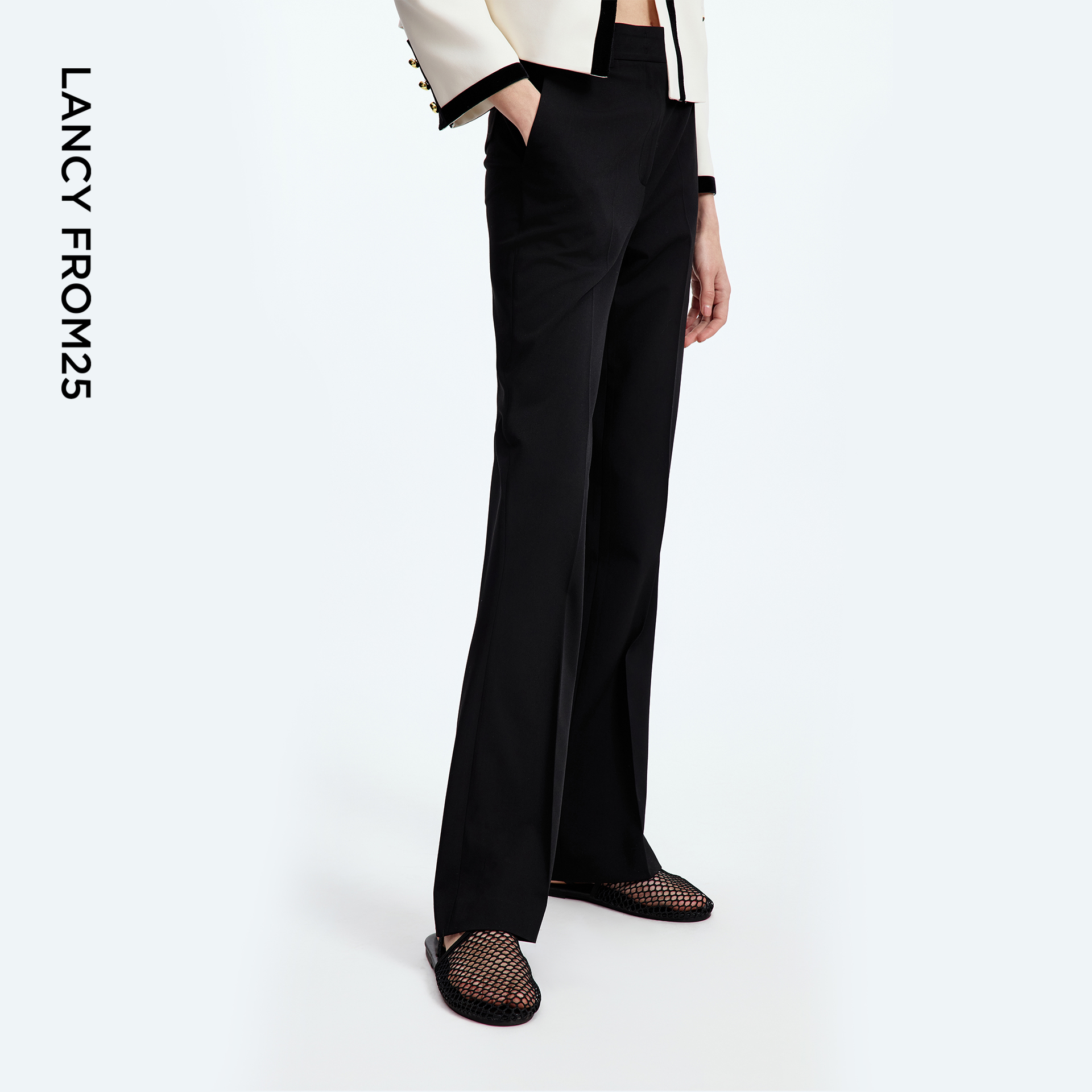 新款 朗姿黑色高腰直筒裤 2025年秋季 高级感气质长裤 女 通勤百搭西裤