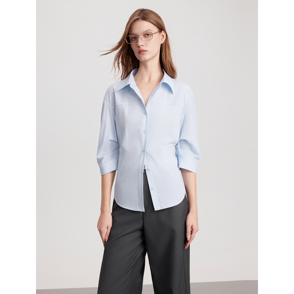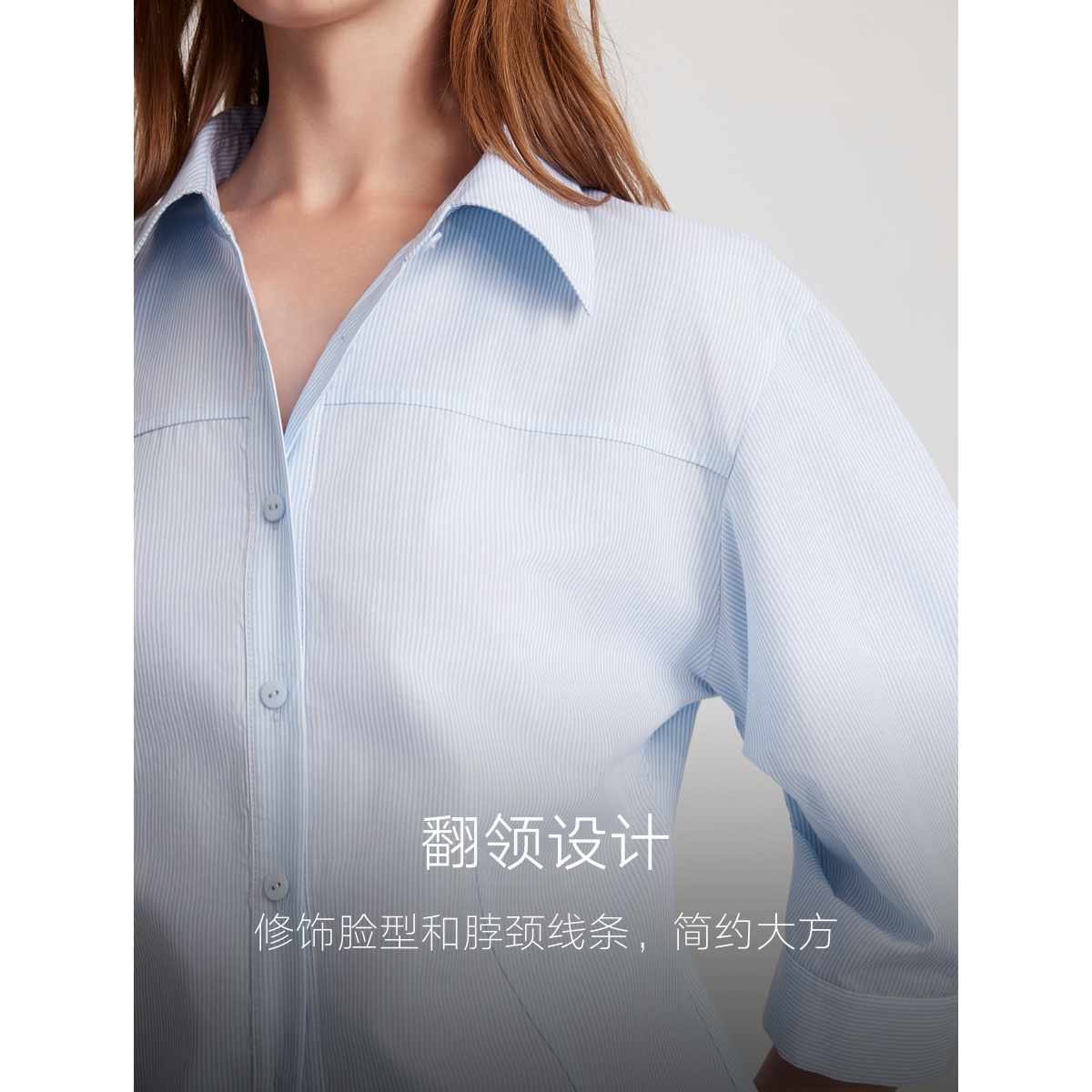 新款 女2025夏季 ELLE摩登条纹通勤衬衫 莱赛尔天丝时髦上衣 自营