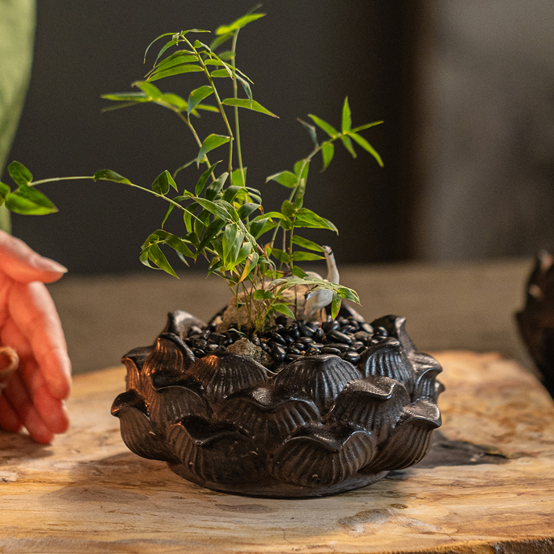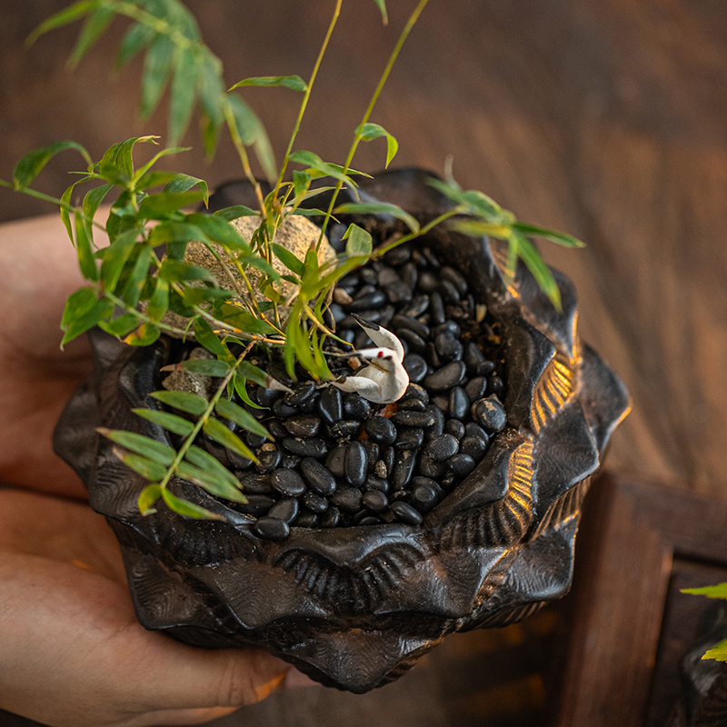 复古小花盆仿古做旧禅意国风艺术花器茶室桌面装 饰摆件花盆小号