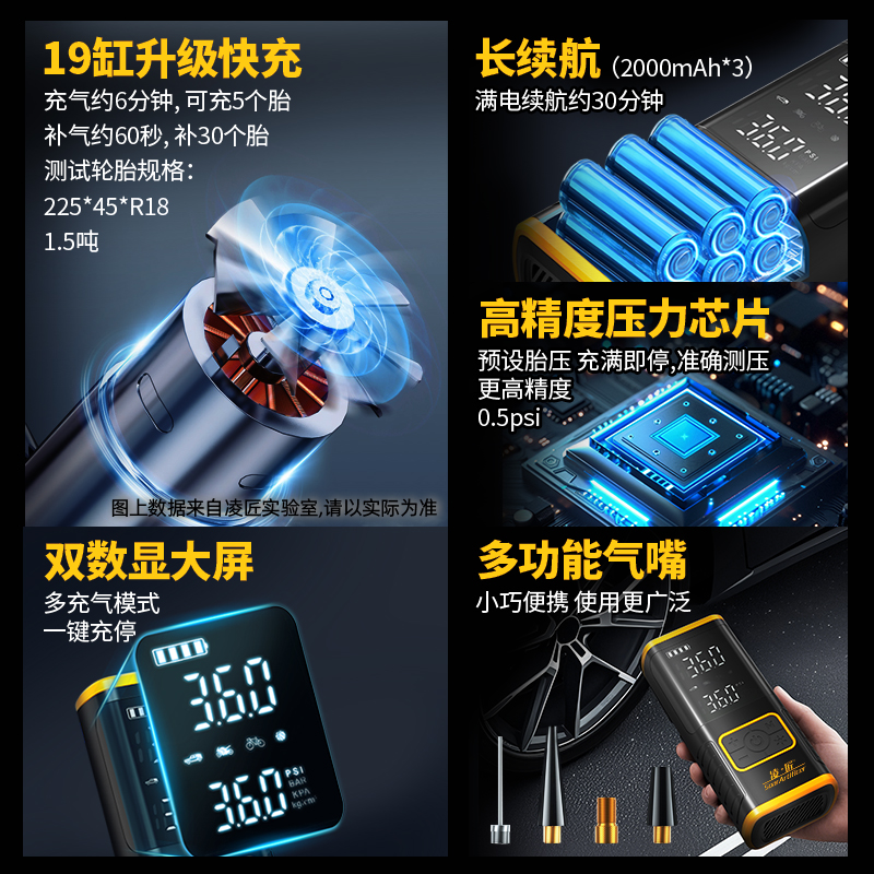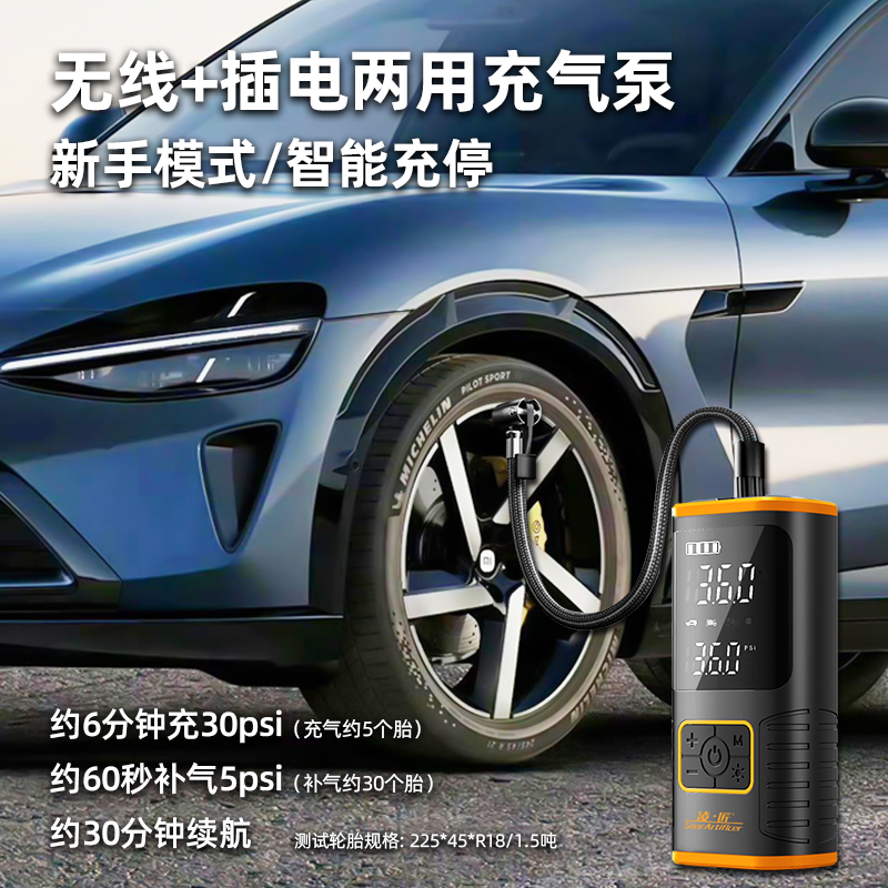 凌匠07车载无线充气泵车家两用电动摩托车充气宝汽车用轮胎打气泵