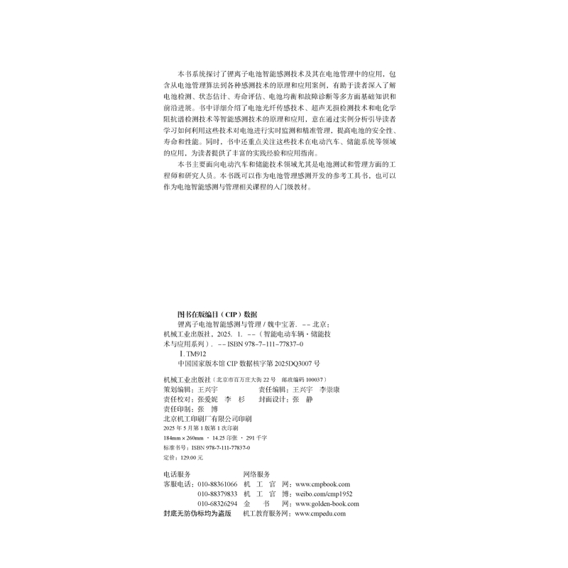 社新华书店正版 锂离子电池智能感测与管理 智能电动车辆.储能技术与应用系列魏中宝电子电路机械工业出版