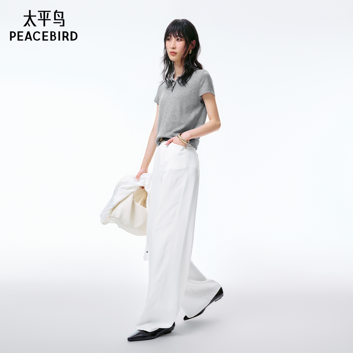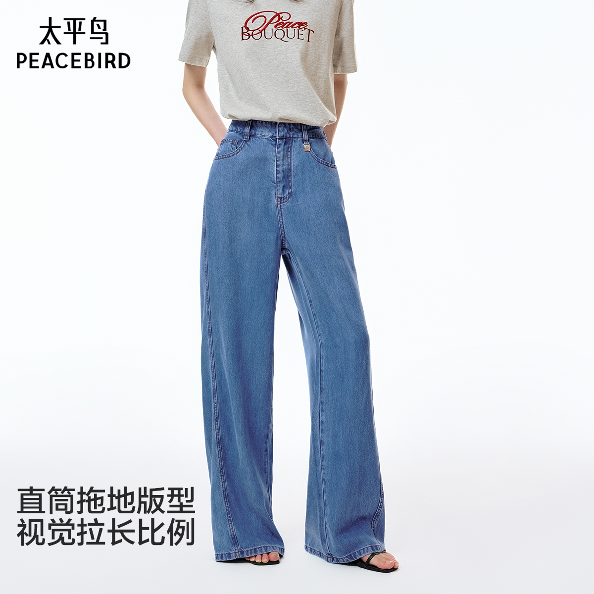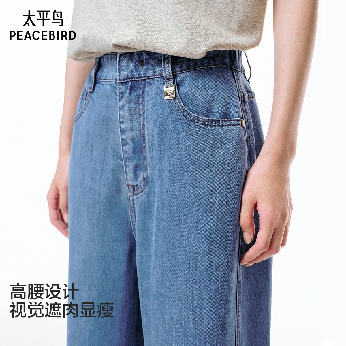 女010IAA11 不规则设计感斜扣遮肚阔腿牛仔裤 6771 MOUSSY 程潇同款