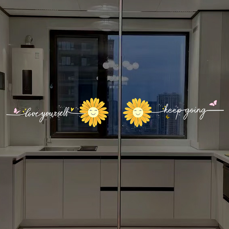 蝴蝶花厨房玻璃门防撞静电贴纸防水浴室装 饰贴画落地玻璃窗贴窗花