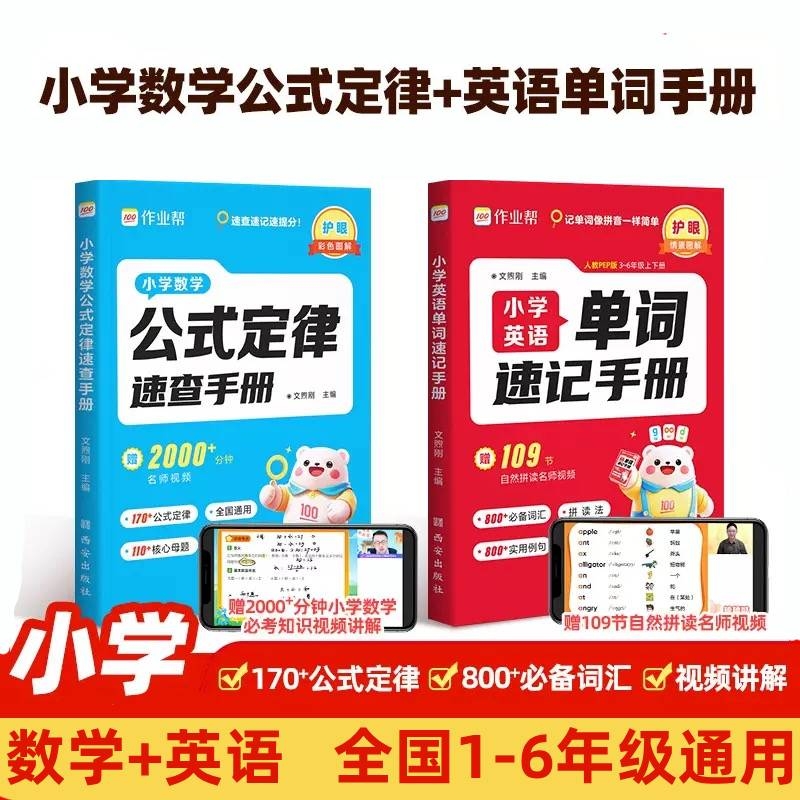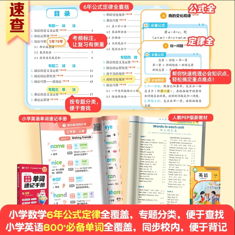 作业帮小学数学公式 大全L 定律速查手册英语单词一二三四五六年级通用核心母题巧算速算便携口袋书人教通用知识点汇总速记考点公式