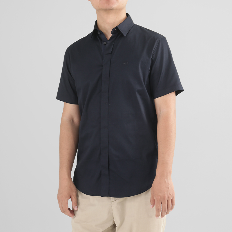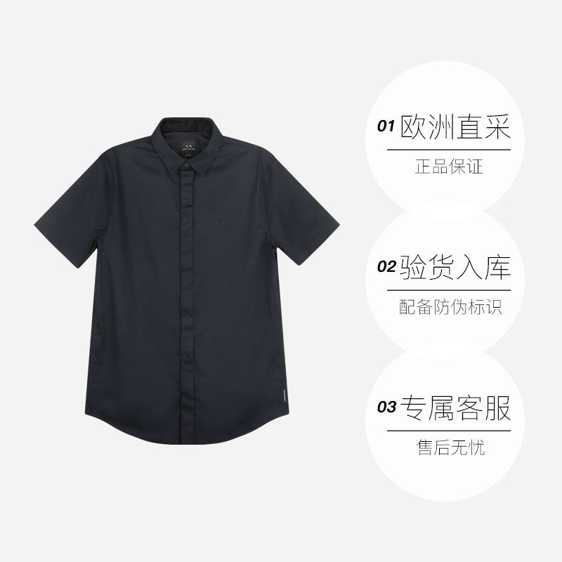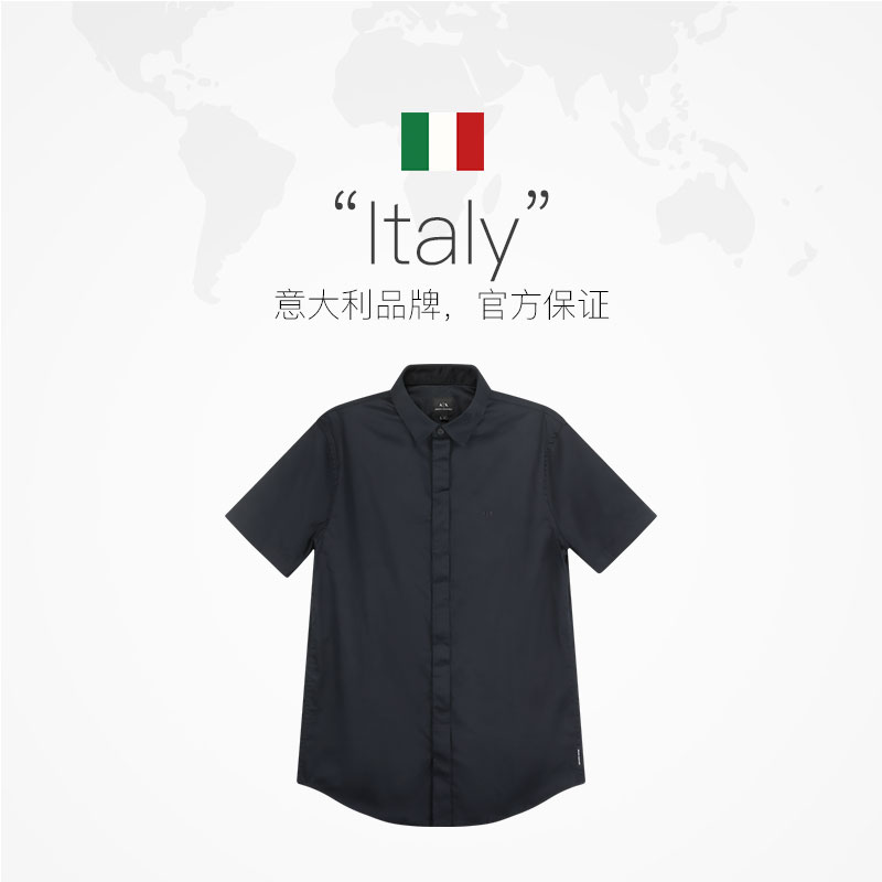 Exchange男士 Armani 棉质修身 版 衬衫 系扣暗门襟翻领短袖 自营