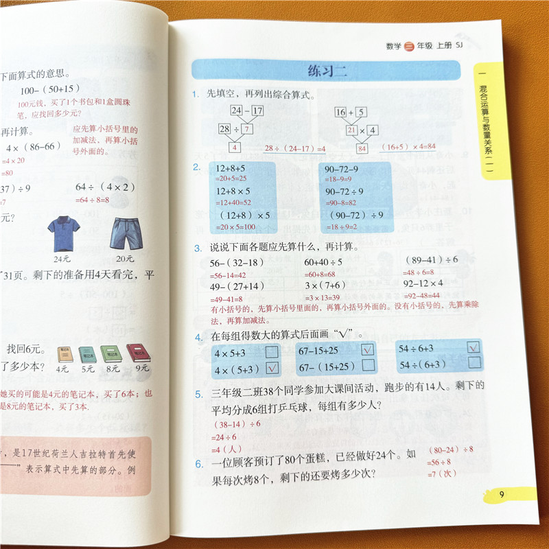 课本同步原文重点难点知识点解析数学答案书提前预习复习资料书正版 苏教版 人教版 改版 教材 三年级上册数学课堂笔记2025秋季