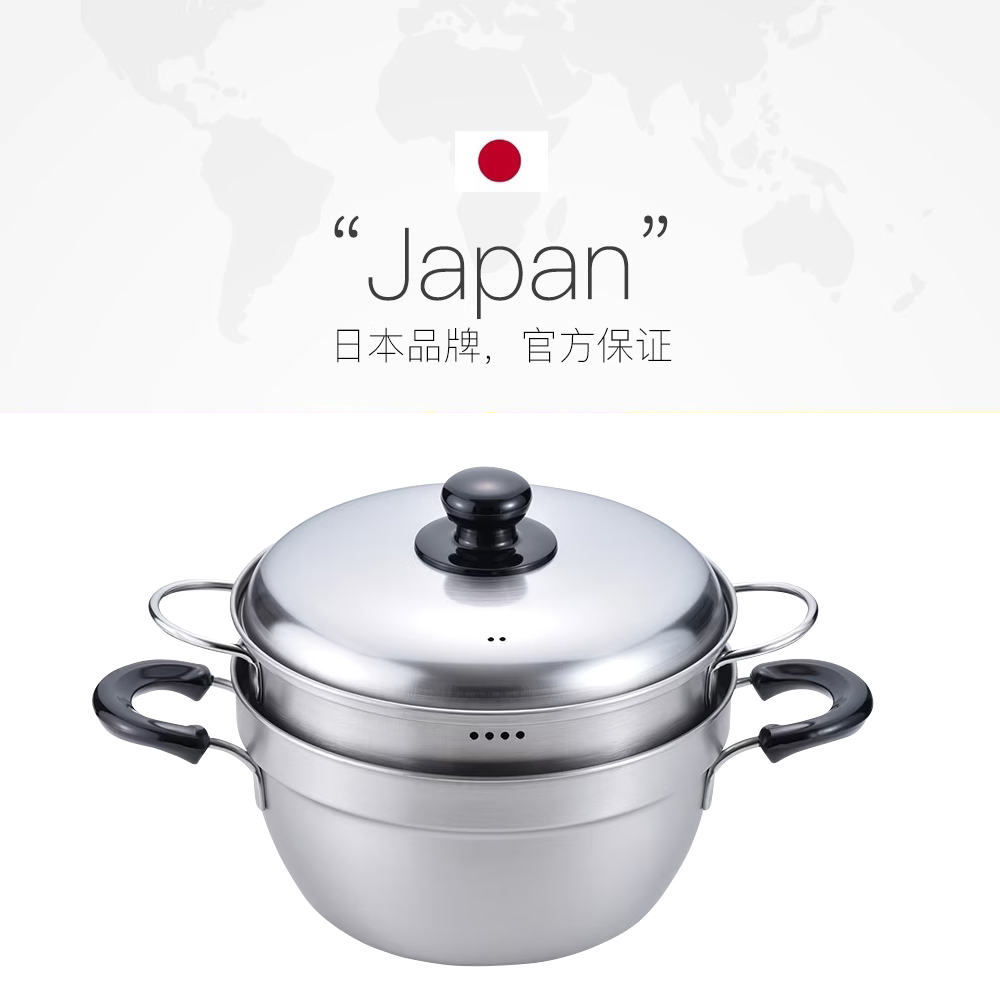 日本燕三进口不锈钢汤锅家用无涂层蒸锅多功能蒸煮炖煲汤 自营