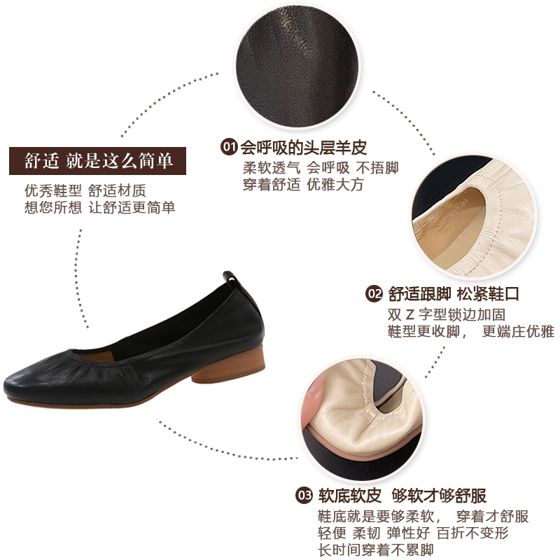 舒适真皮软底妈妈鞋 夏季 浅口圆头平底豆豆鞋 女鞋 孕妇单鞋 2025春季
