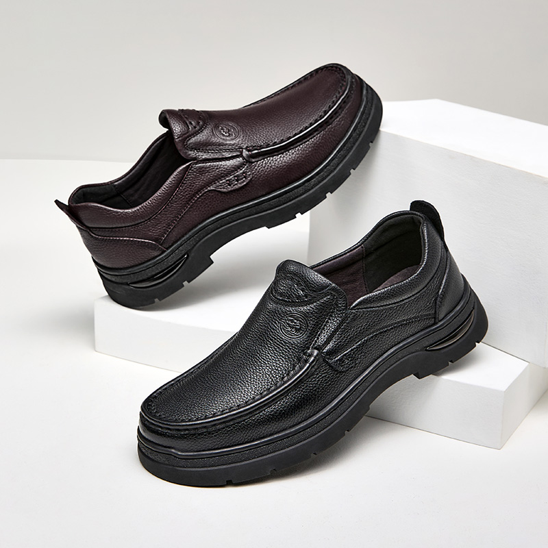 头层牛皮一脚蹬厚底商务休闲中老年爸爸男鞋 老人头皮鞋 男真皮秋季