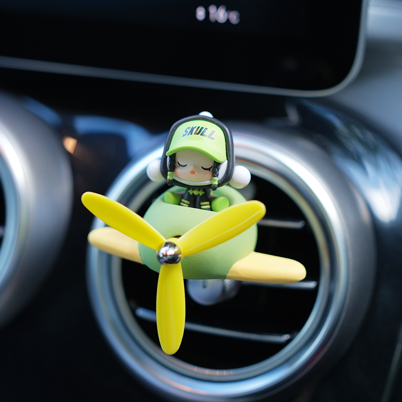 网红螺旋桨飞机车载香薰创意手办汽车空调出风口香水装 饰风扇摆件