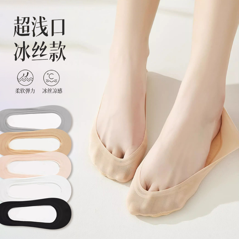 高跟鞋 袜子薄款 袜子 冰丝隐形袜棉制底防滑不掉跟浅口鞋 船袜女夏季
