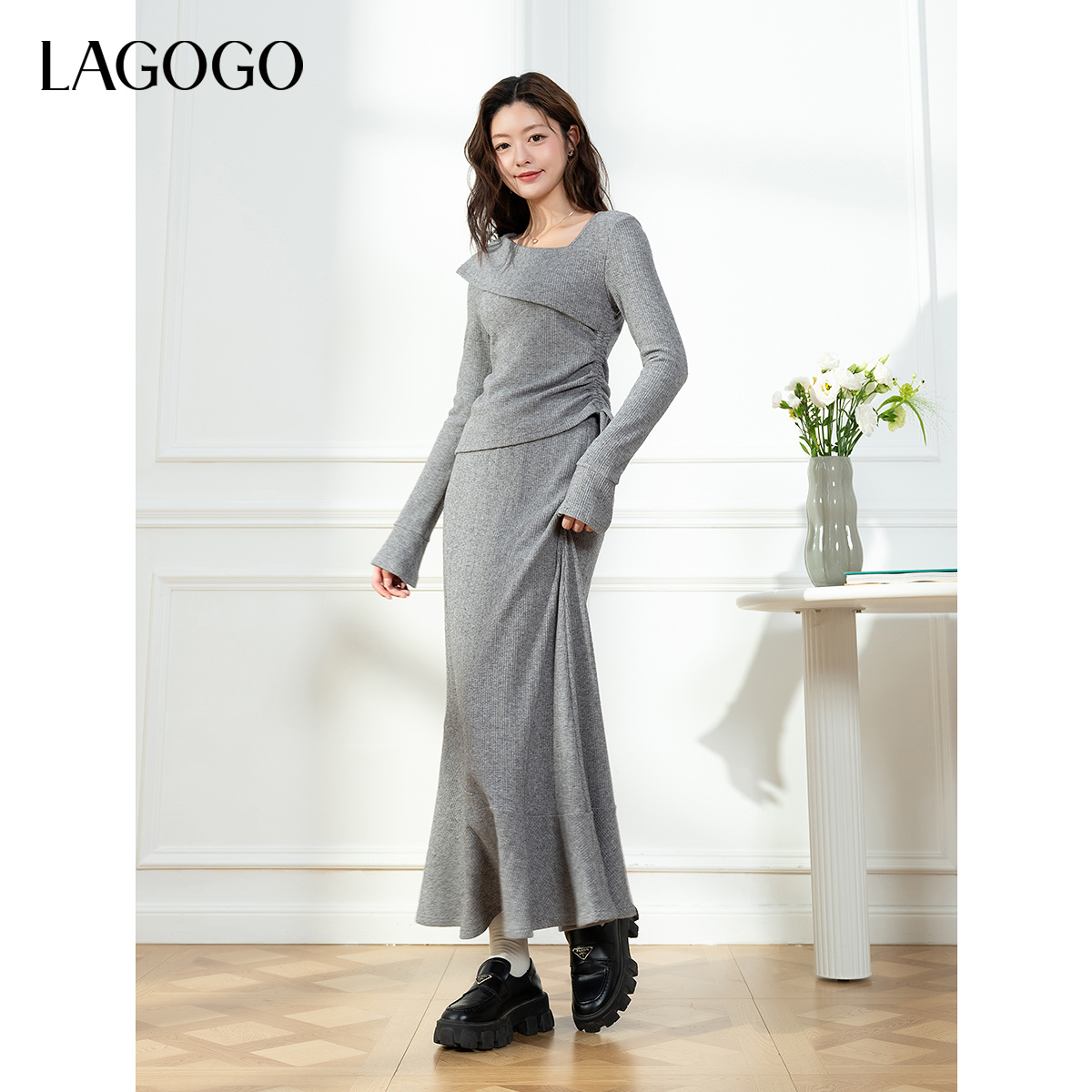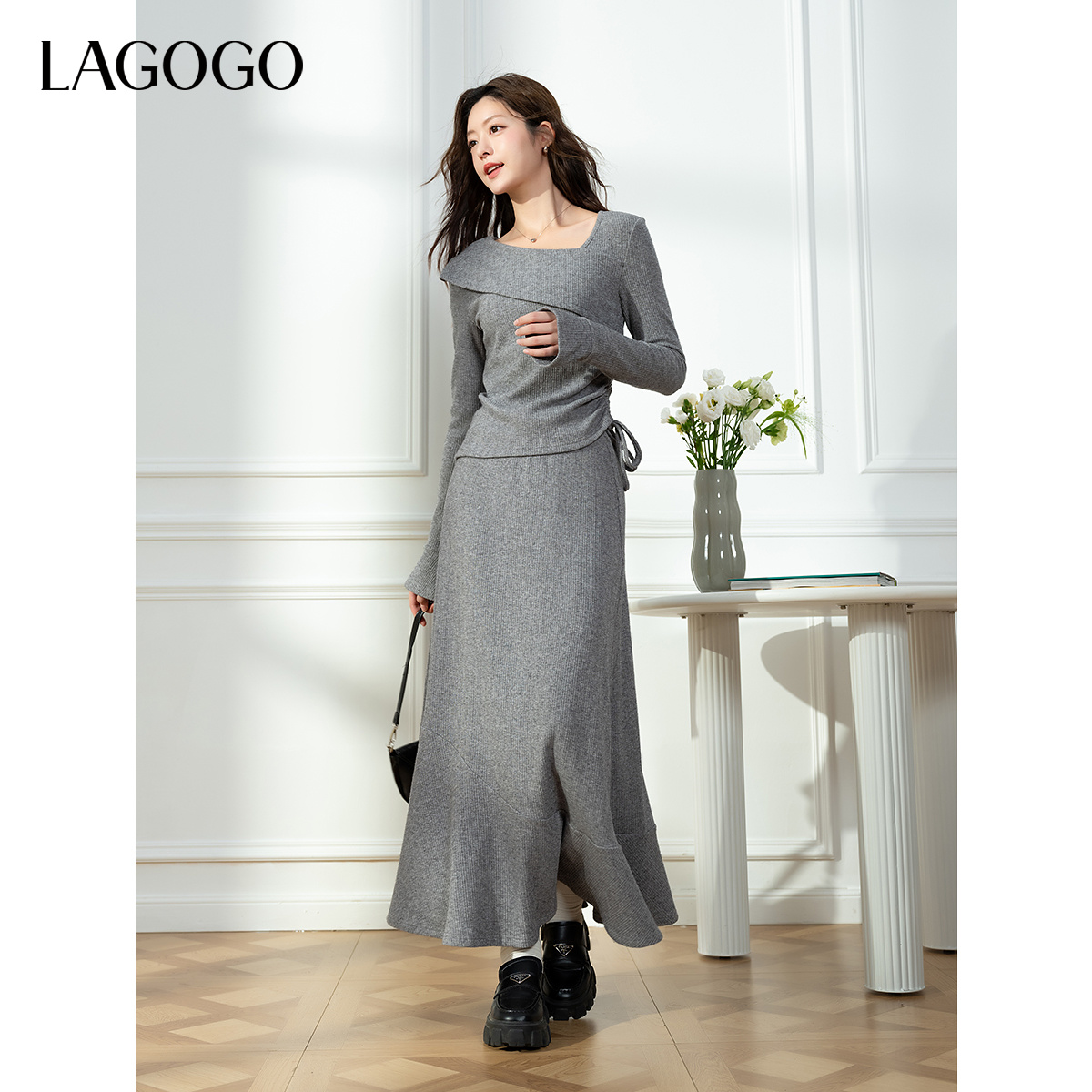 修身 女拉谷谷2025秋冬新款 显瘦鱼尾半身裙 针织套装 LAGOGO长袖